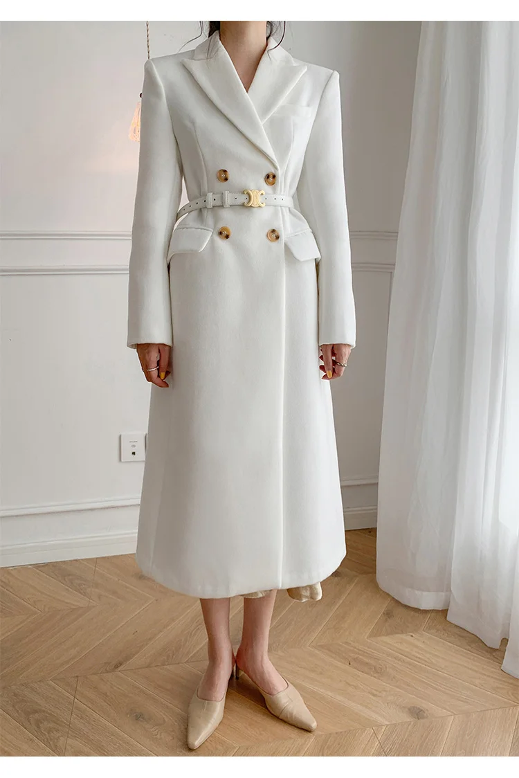 Зимнее шерстяное пальто женское элегантное белое утолщенное теплое кашемировое Полушерстяное пальто куртка Верхняя одежда модельное модное женское пальто