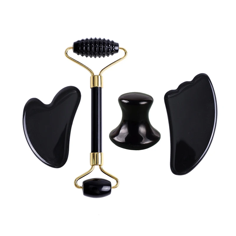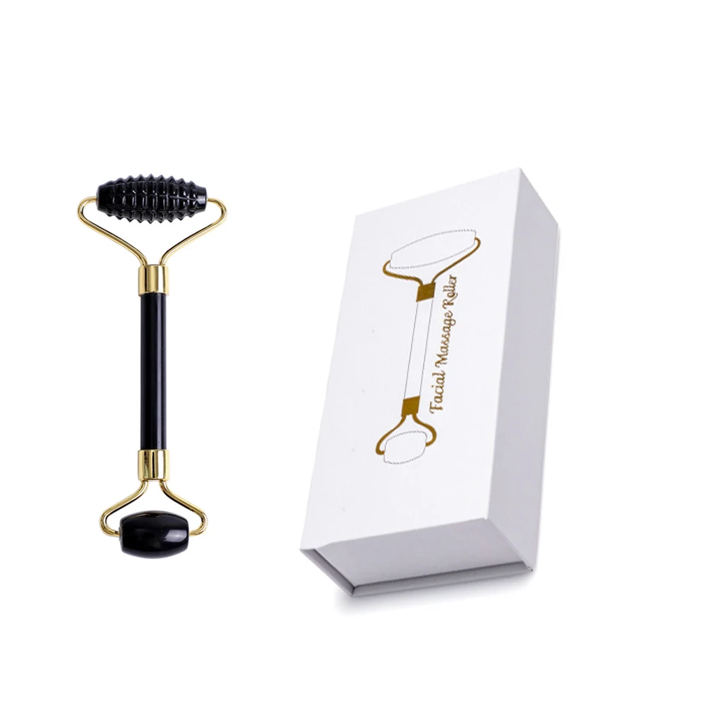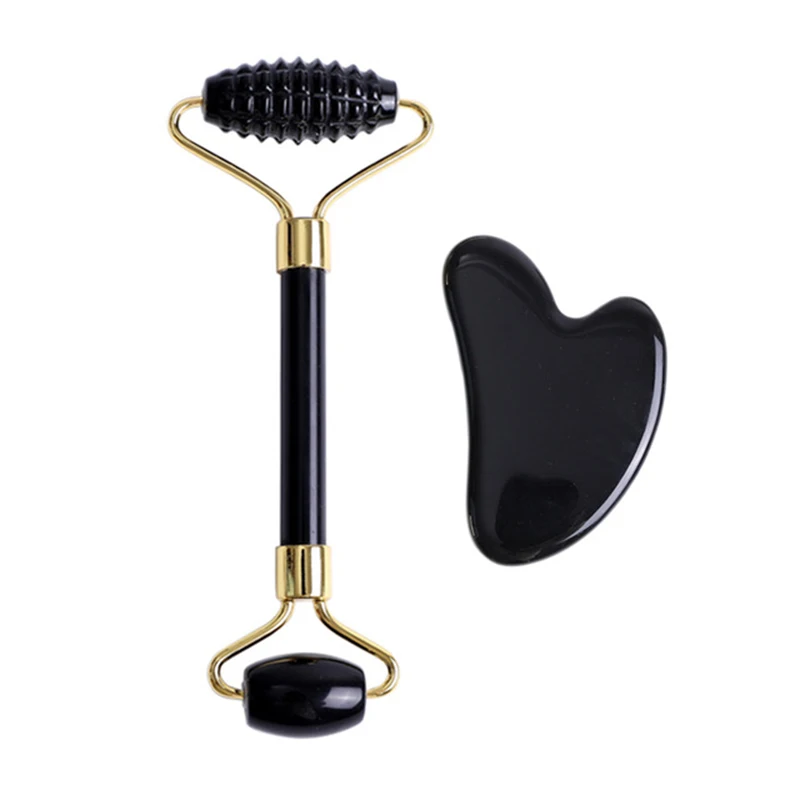 Зигзаг нефритовый ролик гуашь скребок массажер для лица ролик Gua sha скребок натуральный черный обсидиановый Кристалл Камень для похудения красота