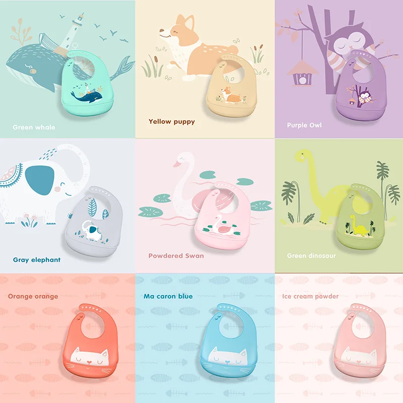 Детский силиконовый нагрудник, водонепроницаемый мягкий слюнявчик, слюнявчик, нагрудник для обеда, регулируемый нагрудник, аксессуары для кормления, милый мультяшный нагрудник