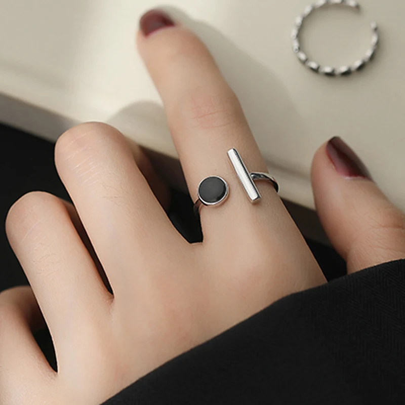 XIYANIKE посеребренное геометрическое черное Стразы круглое кольцо женское корейское модное открытое регулируемое ручная работа парные подарки