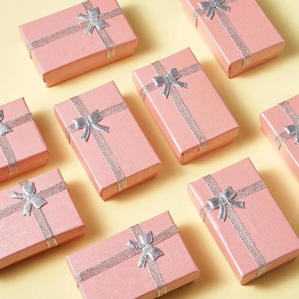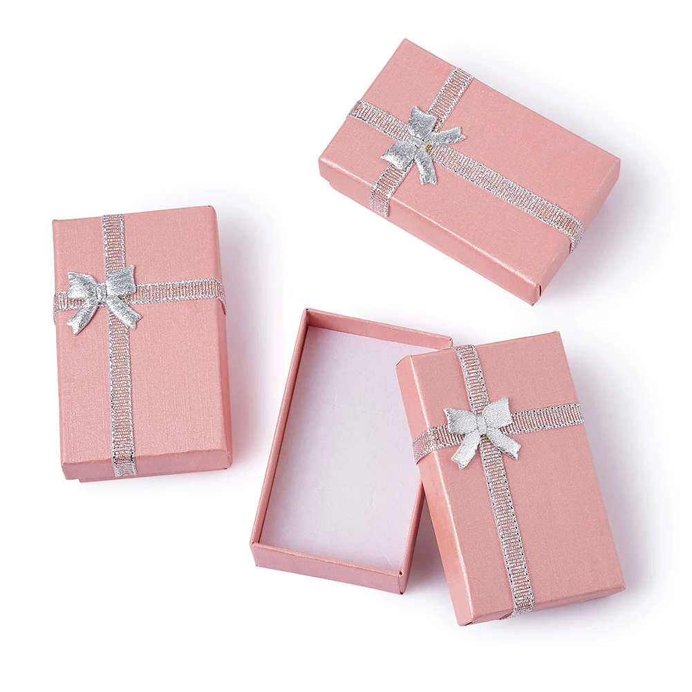 Подарочные картонные коробочки для ювелирных изделий, 24 шт., розовый с бантом и губкой внутри, 80x50x25 мм