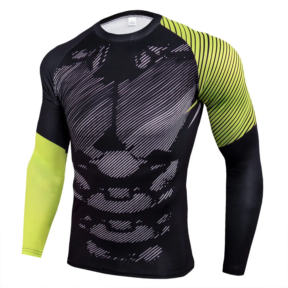 Мужская компрессионная футболка для бега, Спортивная футболка для спортзала, фитнеса, быстросохнущая футболка с длинным рукавом для тренировок, футболки для MMA, Муай Тай, бокса, Рашгард