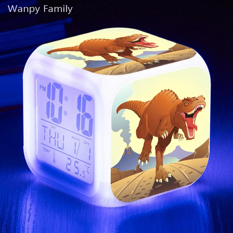 Будильник с динозавром Юрского периода, 7 цветов, светодиодные цифр...
