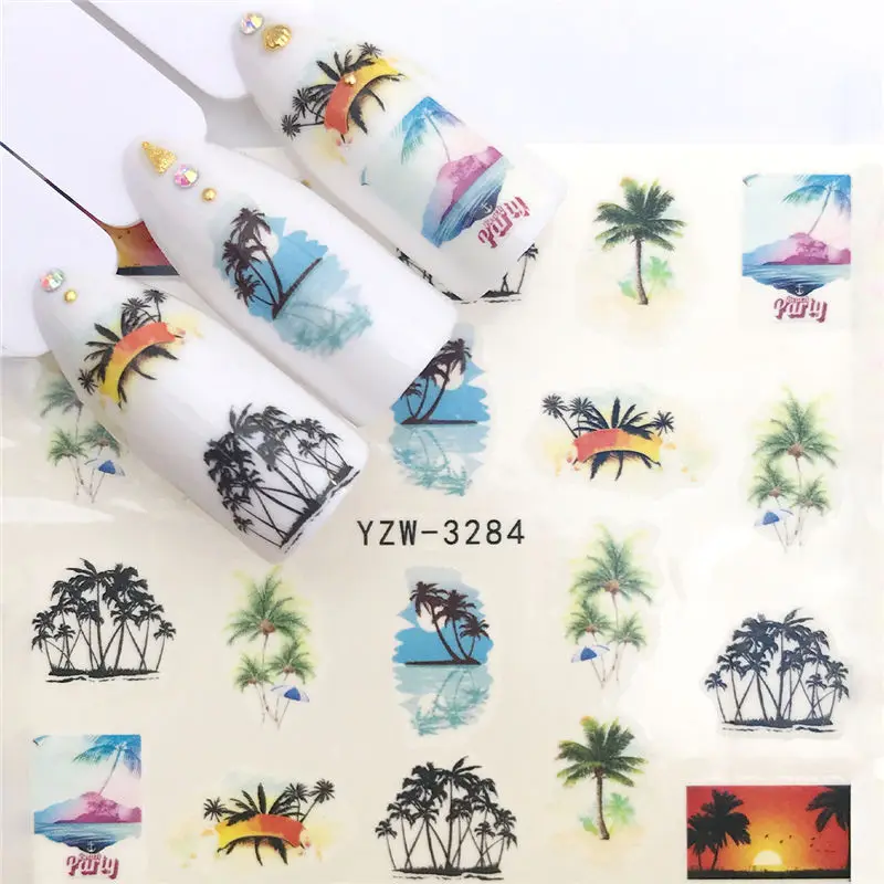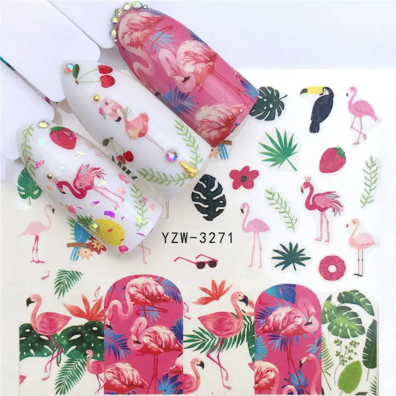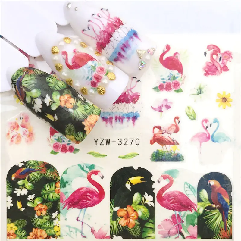 1 шт. вода наклейки для ногтей, переводная картинка Морские обитатели Фламинго Переводные листья украшения для ногтей слайдер водяной знак, маникюр наконечники из фольги
