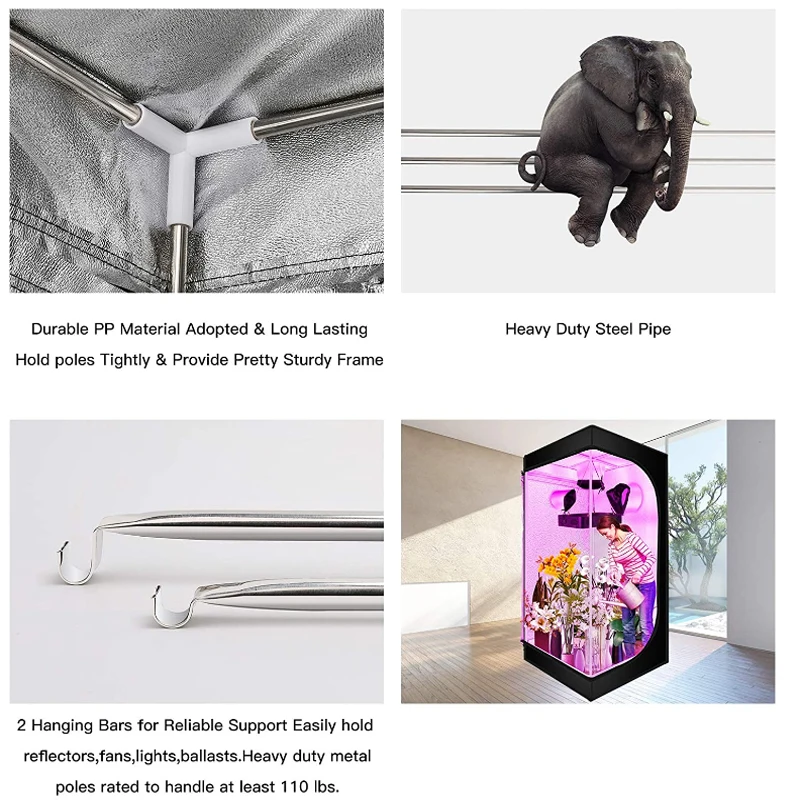 Наш тент для выращивания внутри помещения имеет стабильную конструкцию600D ткань Оксфорд снаружи и 100% высоко отражающий майлар внутриС внешней молнией дизайн обеспечивает безопасность использования и легко настроитьИ он также имеет несколько вентиляторов для размещения вентиляторов и фильтровОтлично подходит для выращивания экзотических фруктов, трав, овощей или сезонных фруктов вне сезона.Мы обещаем предоставить вам высококачественное гидропонное оборудование и услуги по нашим заводским ценам. PS: если вам нужны палатки других размеров, пожалуйста, оставьте нам сообщение, мы можем настроить в соответствии с вашими потребностями, но количество мини-заказа составляет 20 шт. для нестандартного размера. Материал трубки: Железная трубкаДиаметр соединительной трубки: 16 ммСоединительная трубка толщина: 0,8 ммВнутренний Материал подкладки: 100% светоотражающий водонепроницаемый майлар. (рисунок личи Майларовый и Алмазный Узор майларовая доставка случайным образом.)