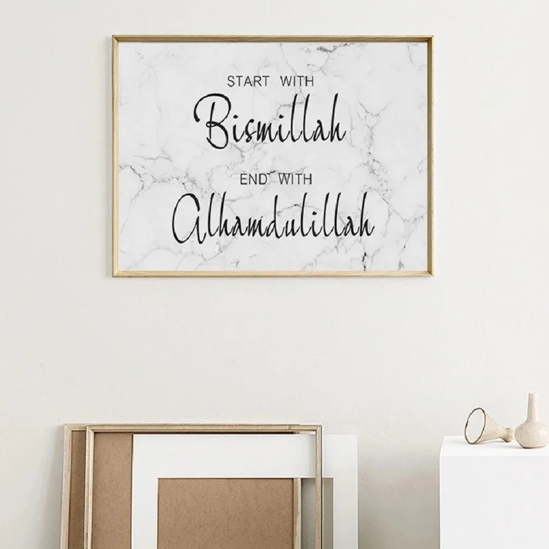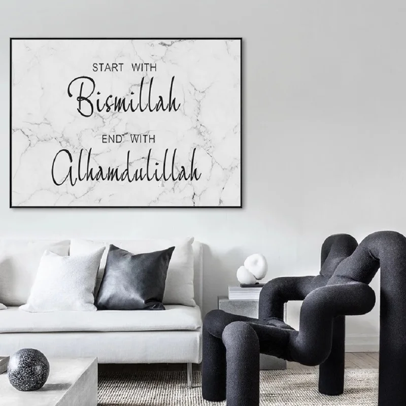 Мусульманская стена Bismillah Alhamdulillah, мраморный фон, картины на холсте, плакаты и принты, картины для гостиной, домашний декор
