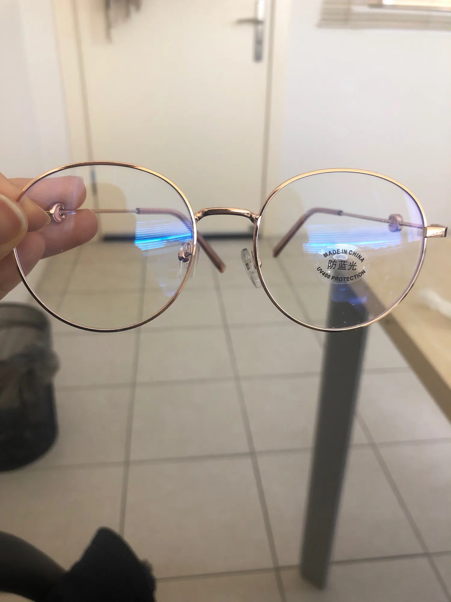 Эти очки точно такие же, как на фотографиях. Они идеальны. Они прочные и удобно сидят на моем лице. Эти очки очень лестны. Кроме того, стекло имеет небольшой оттенок, который незаметен, но его можно увидеть, играя со светом, в основном я уверен, что они имеют отражение синего света. Я очень доволен своей покупкой и определенно рекомендую.