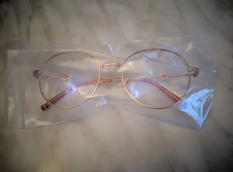 Так красиво и быстро прибыл! Моя единственная проблема заключается в том, что линзы не ясны и они солнцезащитные очки, поэтому они предлагают УФ-защиту, что означает, что они блестят фиолетовыми
