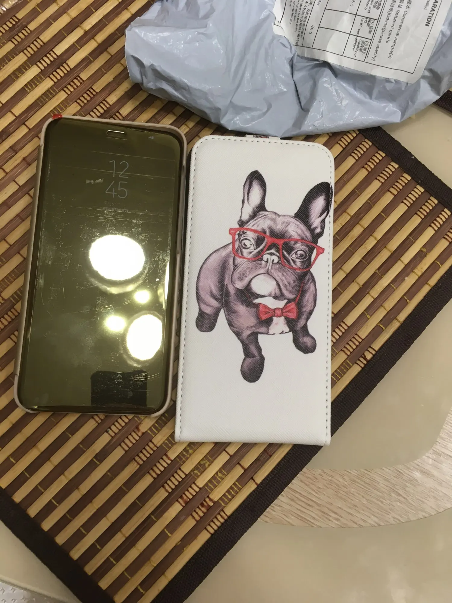 приехало быстро, стекло синие, а вот сам бампер бледный, голубой, телефон не фиксируется в чехле( не надежно) крышка без магнита, но как будто с даводчиком, крышка сама по себе)) быстро пачкается, отпечатки остаются на ура. может я и выпендриваюсь, мне не понравился. в этом чехле телефон должен лежать на полочке.