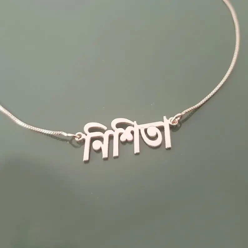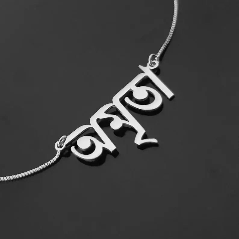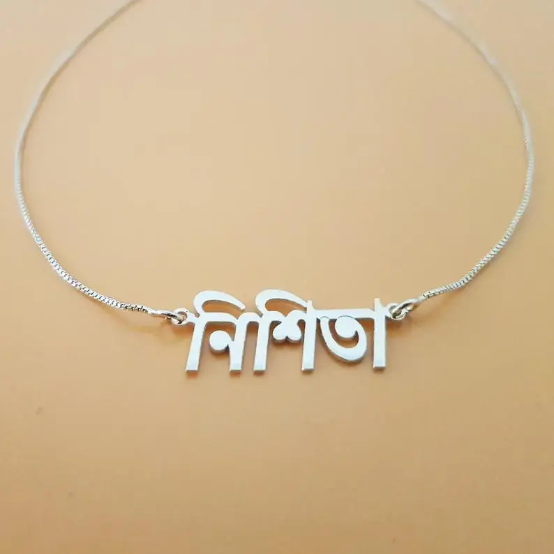 Ожерелье с бенгальским именем на заказ для женщин и мужчин, длинная цепочка из нержавеющей стали, колье с буквами