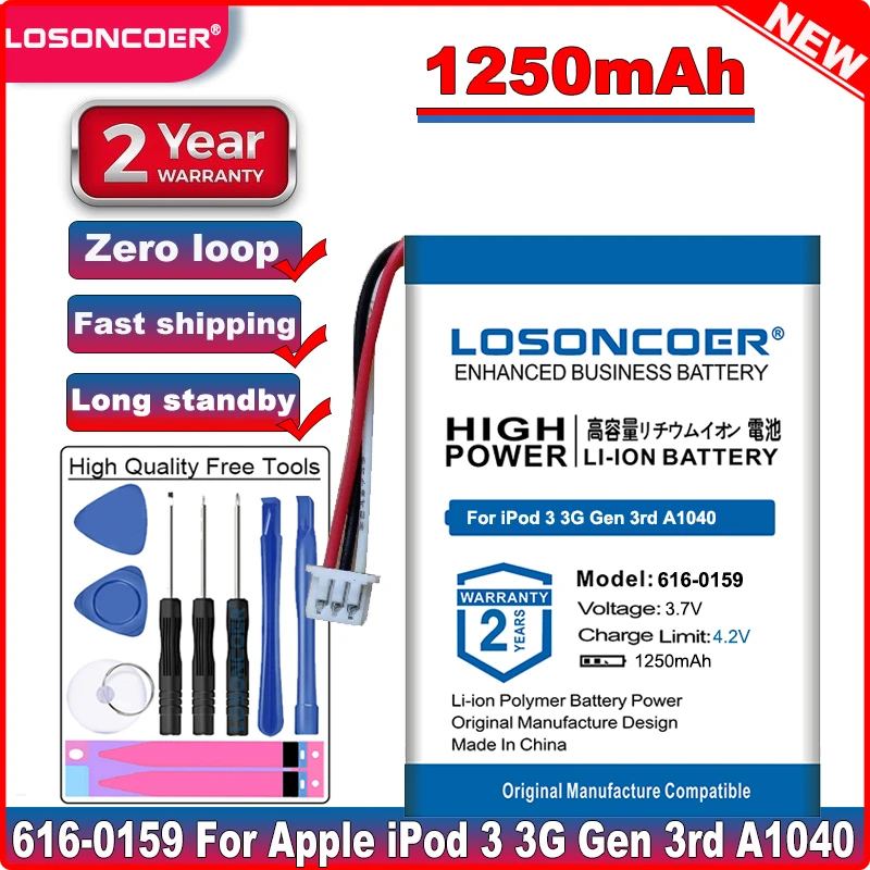 Аккумулятор LOSONCOER 1250 мАч 616-0159 для iPod 3 3G 3-го поколения A1040
