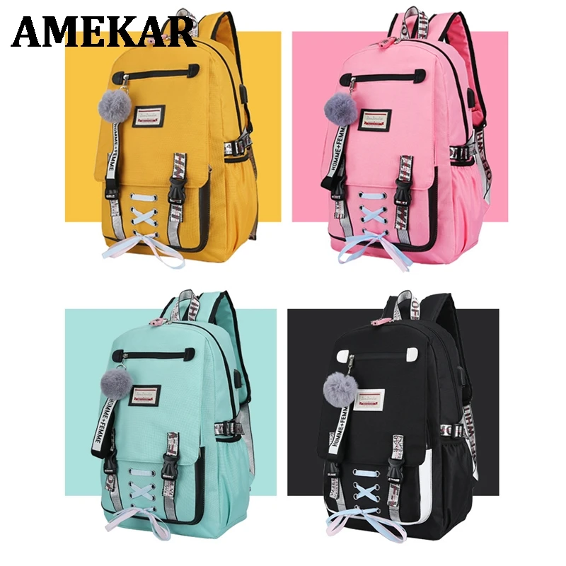 Большие Школьные сумки для девочек-подростков с лентой, USB, школьн...