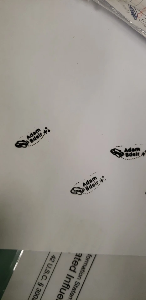 На штампе находится штриховая линия под именем, поэтому, когда вы используете штамп, он сливается с именем и именем, не так ясно, чтобы прочитать... Если я знаю, что эта линия останется, а не только для маркировки места, где будет имя, я должен был выбрать другой дизайн