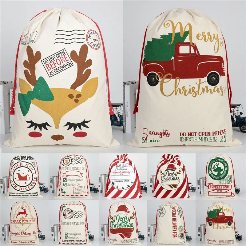 Рождественские Большие Рождественские Чулки мешки, мешки, Подарочные мешки Hessian с Сантой, декоративные мешки для конфет, подарки, сумка на шнурке