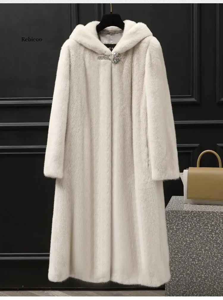 Шуба женская из искусственного меха норки, с капюшоном, зимняя, теплая