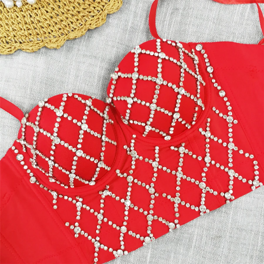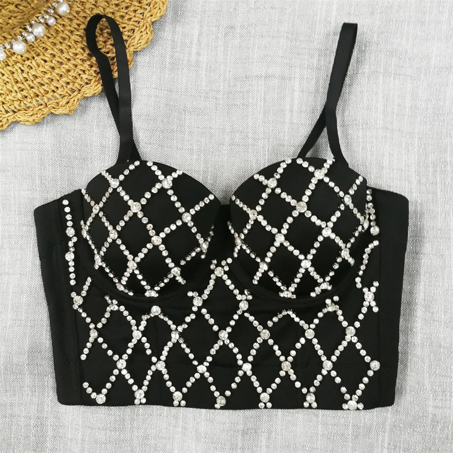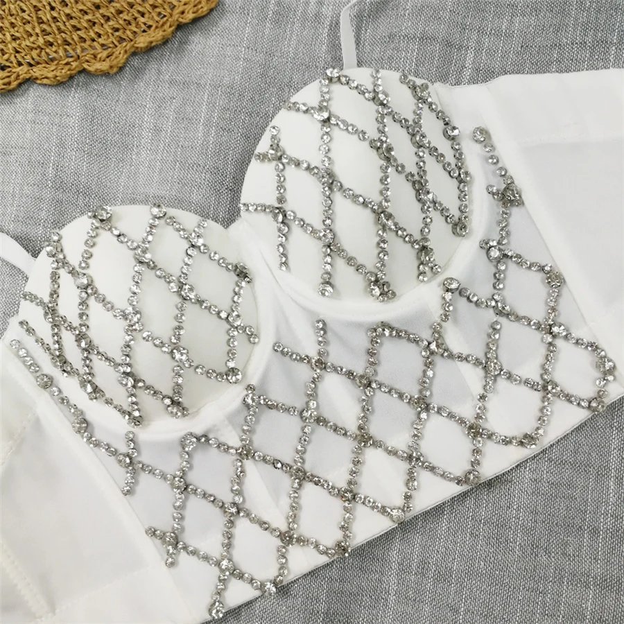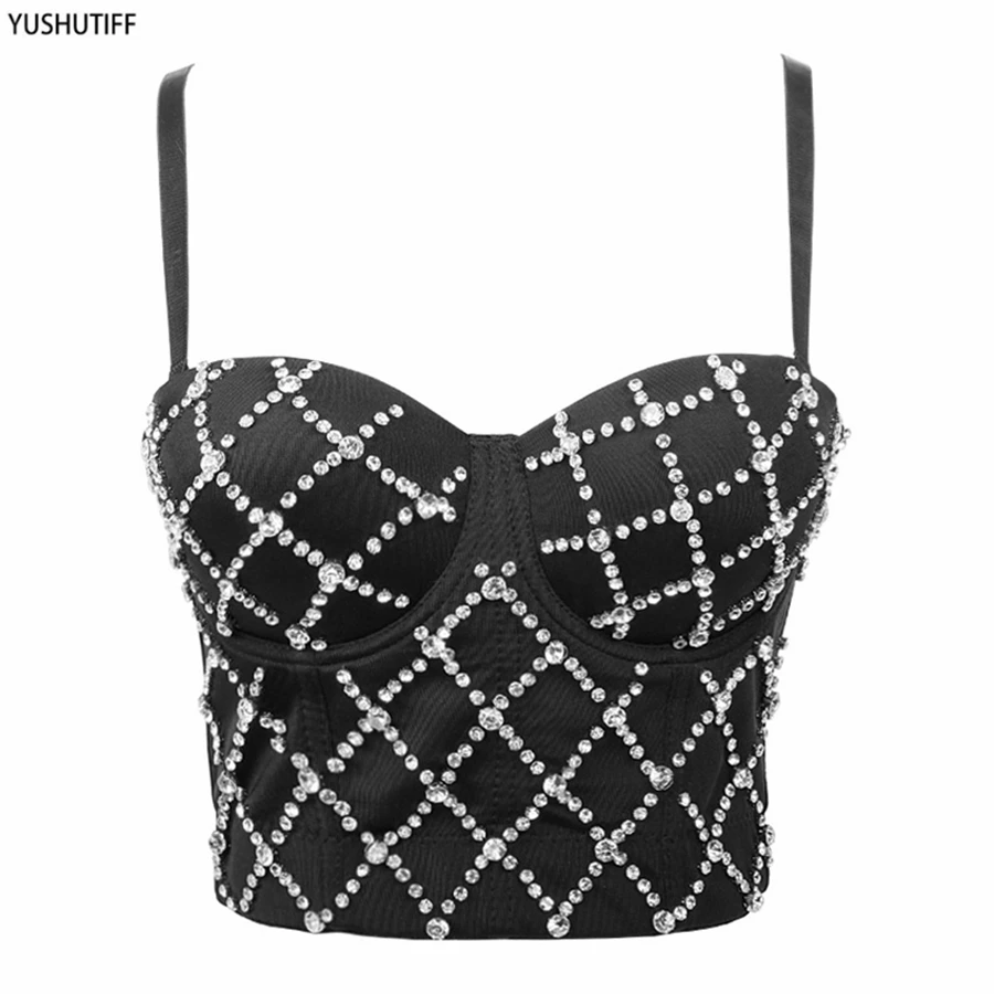 Топ Стразы женский укороченный пикантный корсет с открытыми плечами укороченный топ для ночного клуба бюстье с эффектом пуш-ап одежда YH978