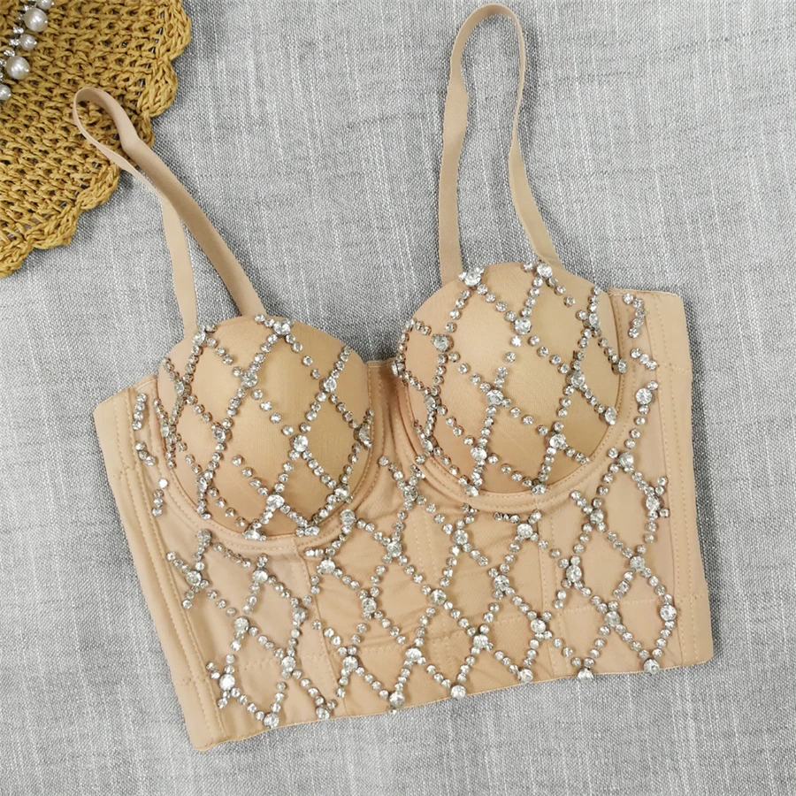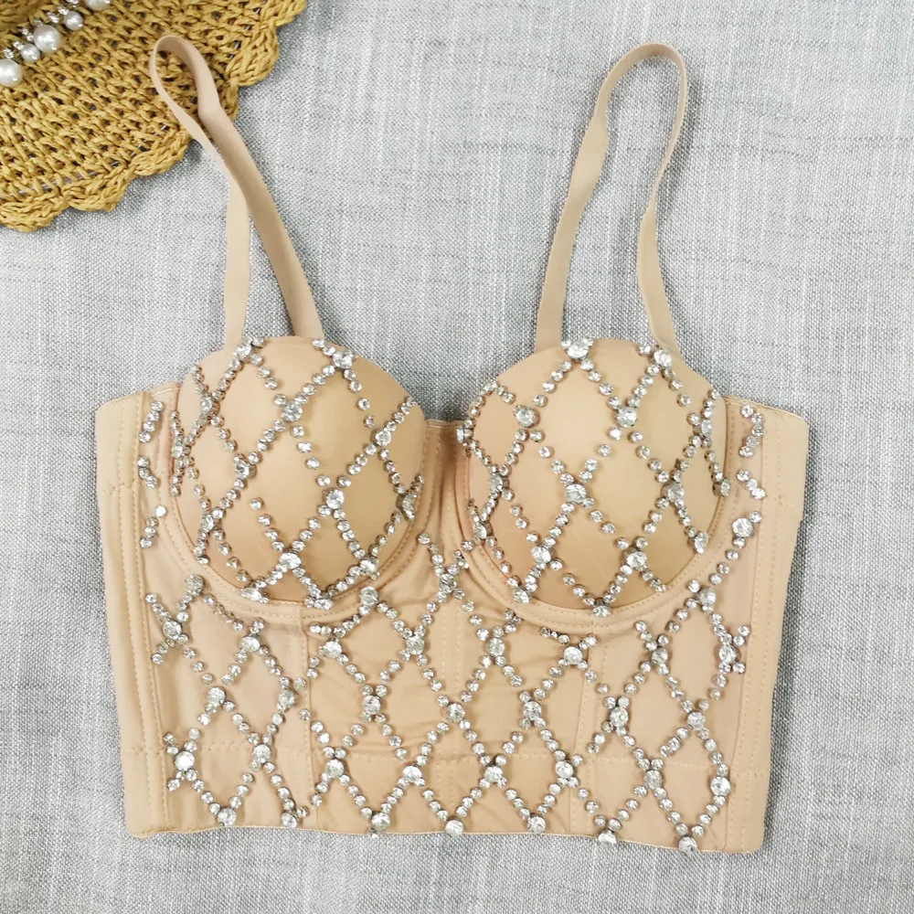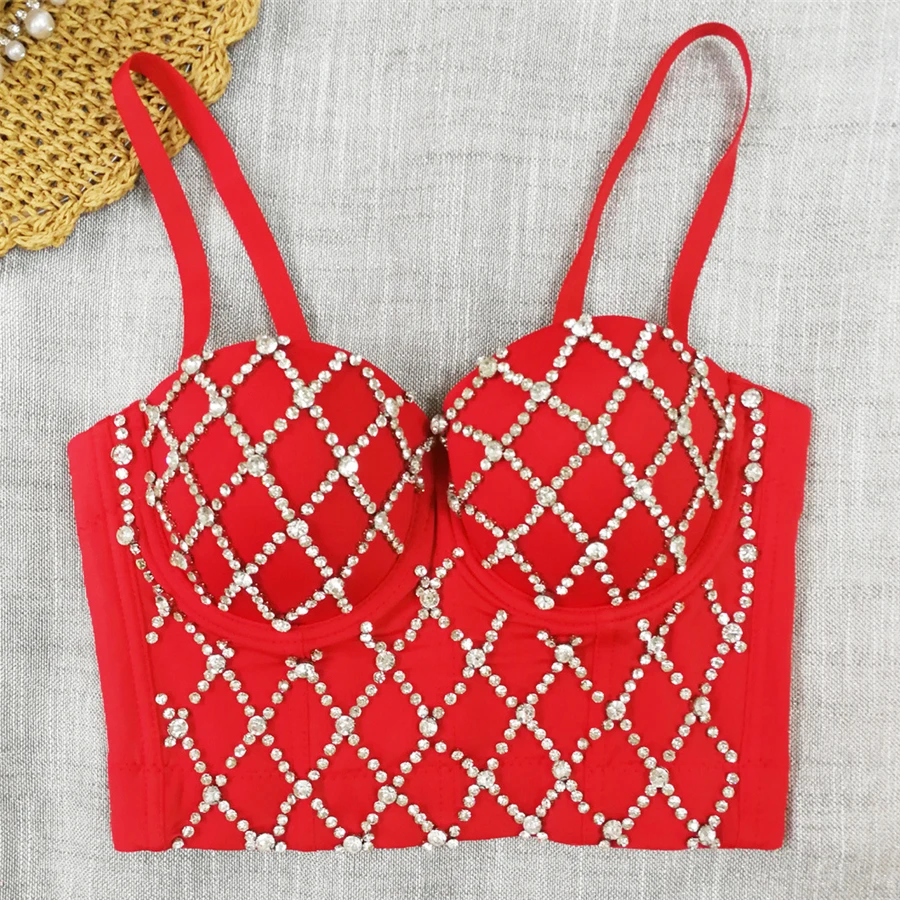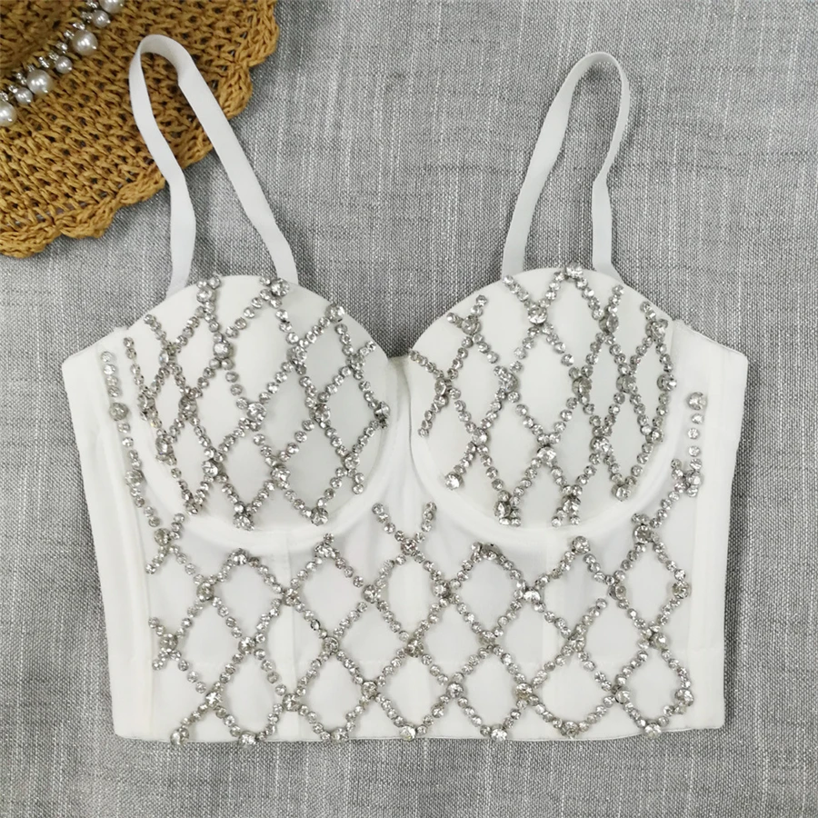 Топ Стразы женский укороченный пикантный корсет с открытыми плечами укороченный топ для ночного клуба бюстье с эффектом пуш-ап одежда YH978