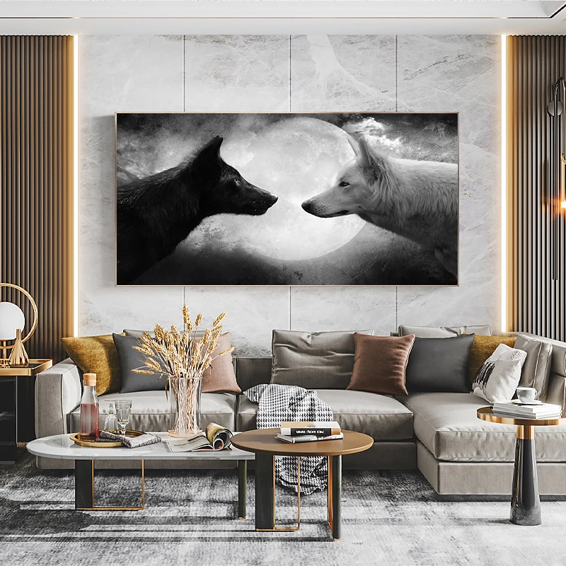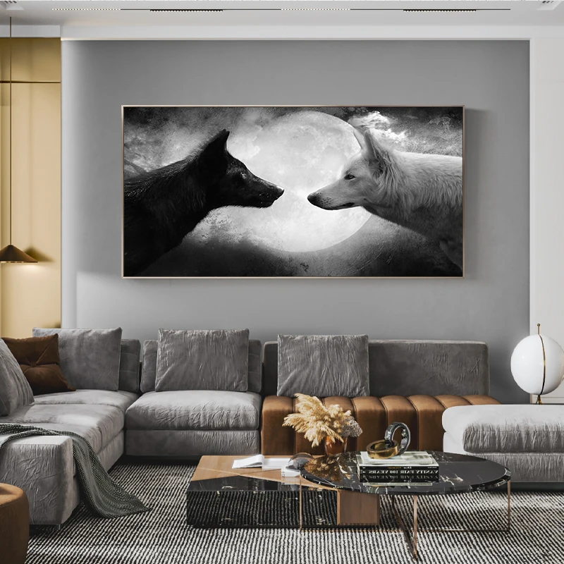 Черно-белый волк художественный стиль домашний декор HD плакаты и принты настенные художественные картины для гостиной домашний декор
