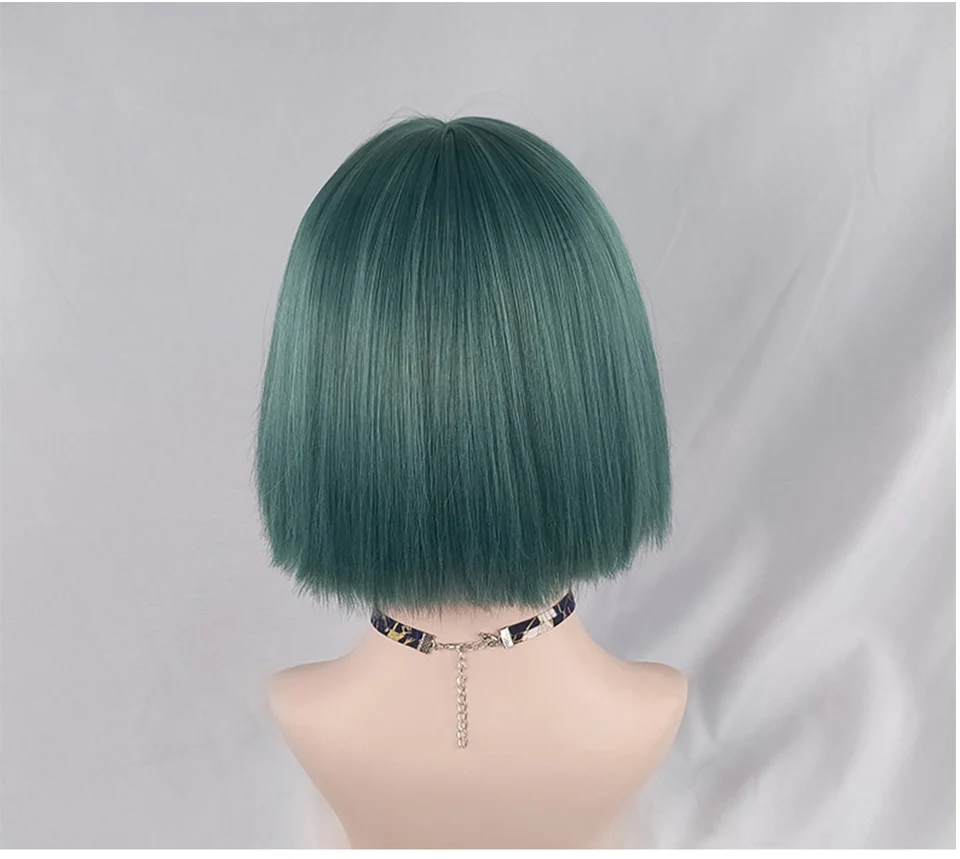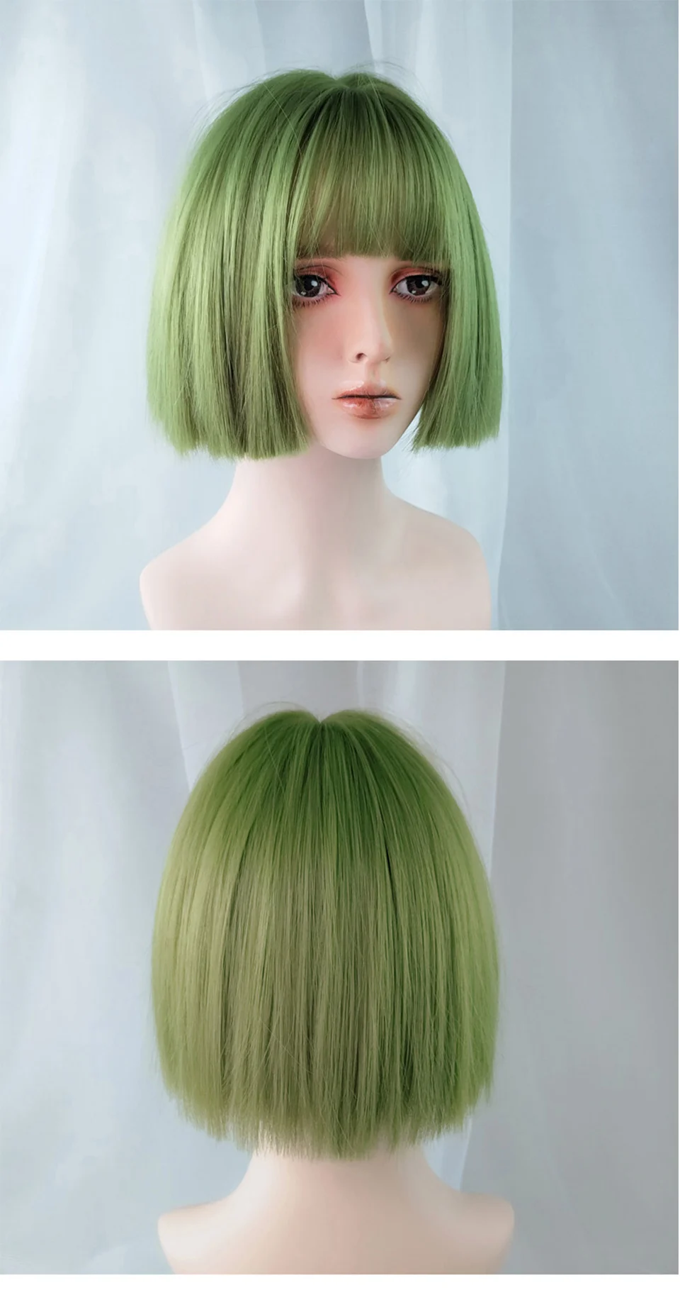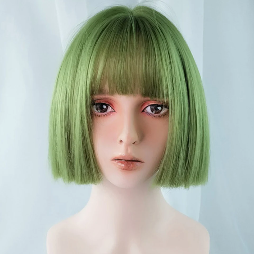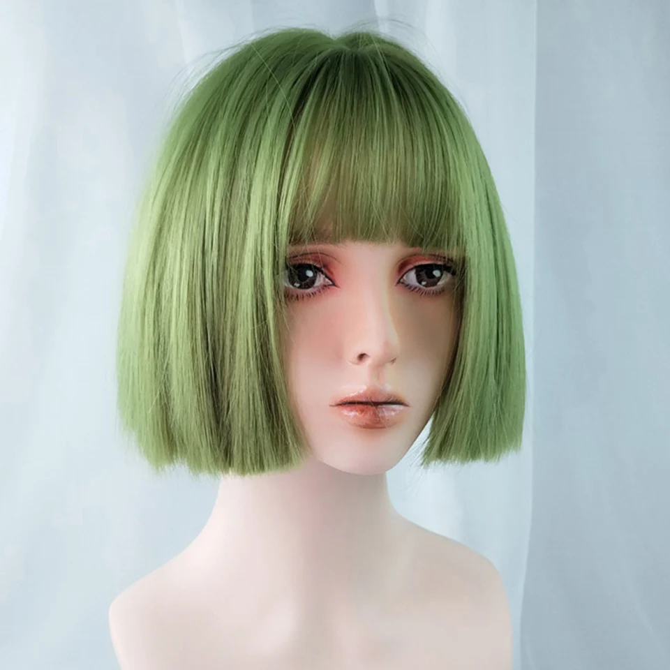 HOIUYAN короткие волосы боб парик зеленые женщины с челкой короткие прямые боб парик синтетические высокой температуры волокна Лолита