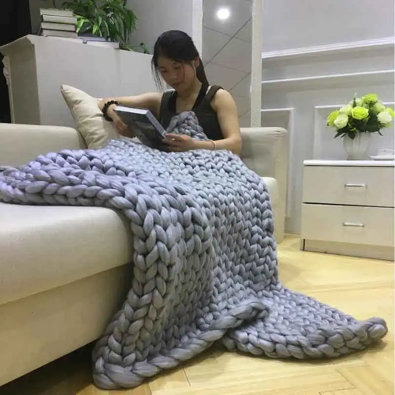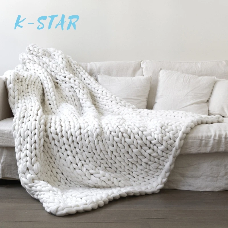 Модное ручное шерстяное вязаное одеяло из толстой пряжи, мериносовая шерсть, объемное вязаное одеяло, Прямая поставка