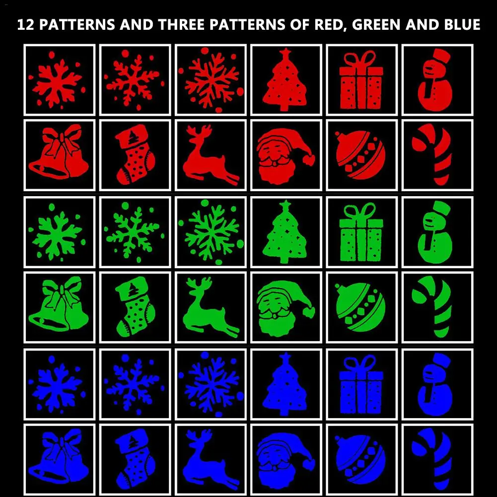-12 переключаемых узоров: необходимо переключать объектив, автоматически вращать; Красочные проекционные изображения о Рождестве. Они подходят для любых случаев каждого сезона каждый год.