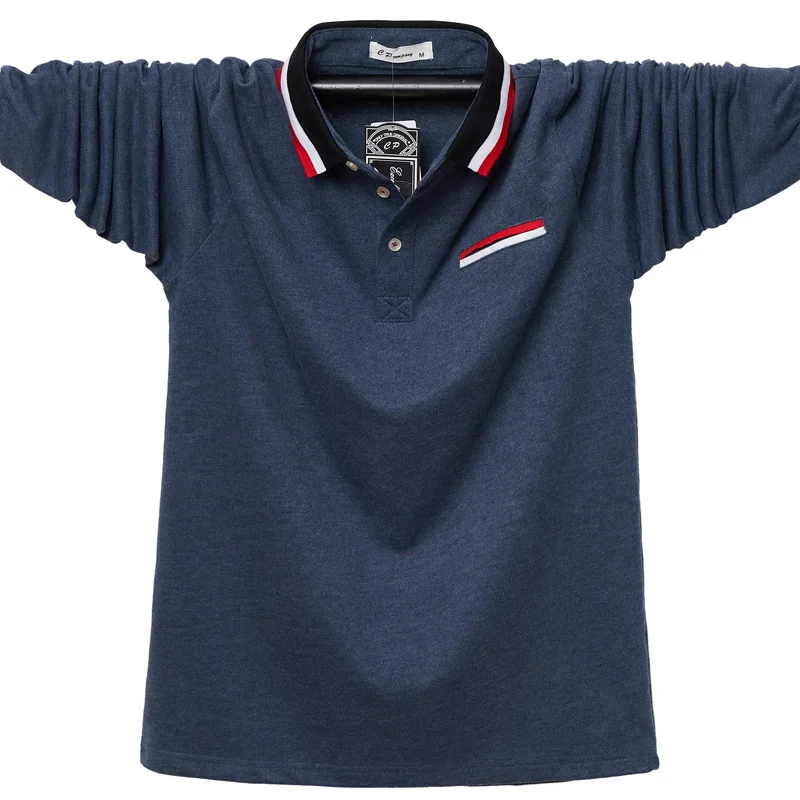 Негабаритных 4XL 5XL 6XL Осенняя мужская рубашка-поло с длинными рукавами Бизнес повседневные 95% хлопок Мужская рубашка поло в полоску