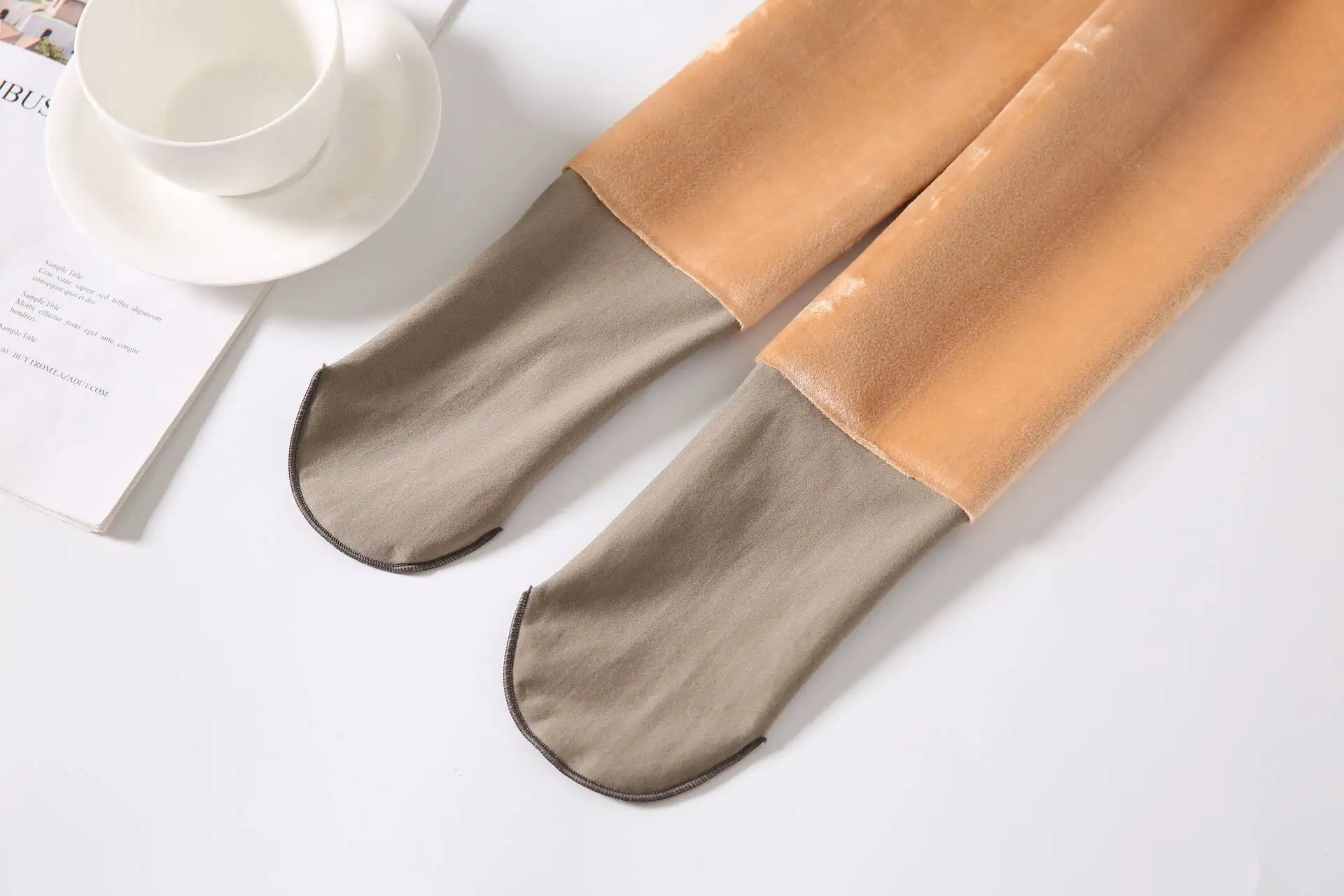 Бархатные женские Чулки с имитацией ног, полупрозрачные теплые флис...