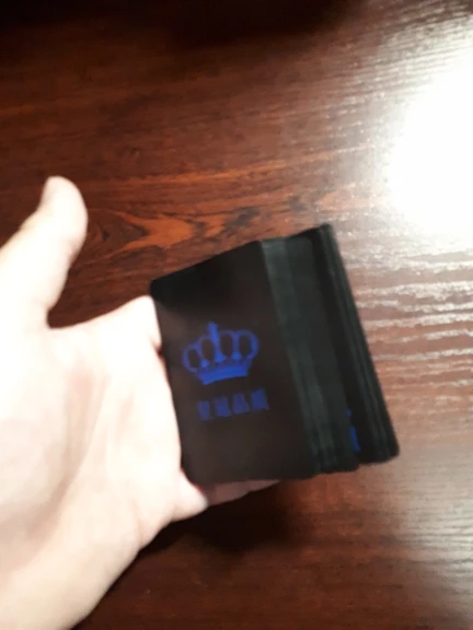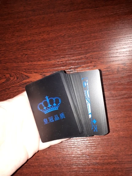 Неплохие пластиковые карты, что ещё сказать. Продавец нигде не обманул, выглядит точь-в-точь, в мою даль приехало довольно быстро, цвета немного тускловаты, но пожаловаться не могу никак, на предоставленных фото продавцом они такие и есть, не поиграть особо в темноте(если брать чёрные текстурированные или чёрные с бело-синими).