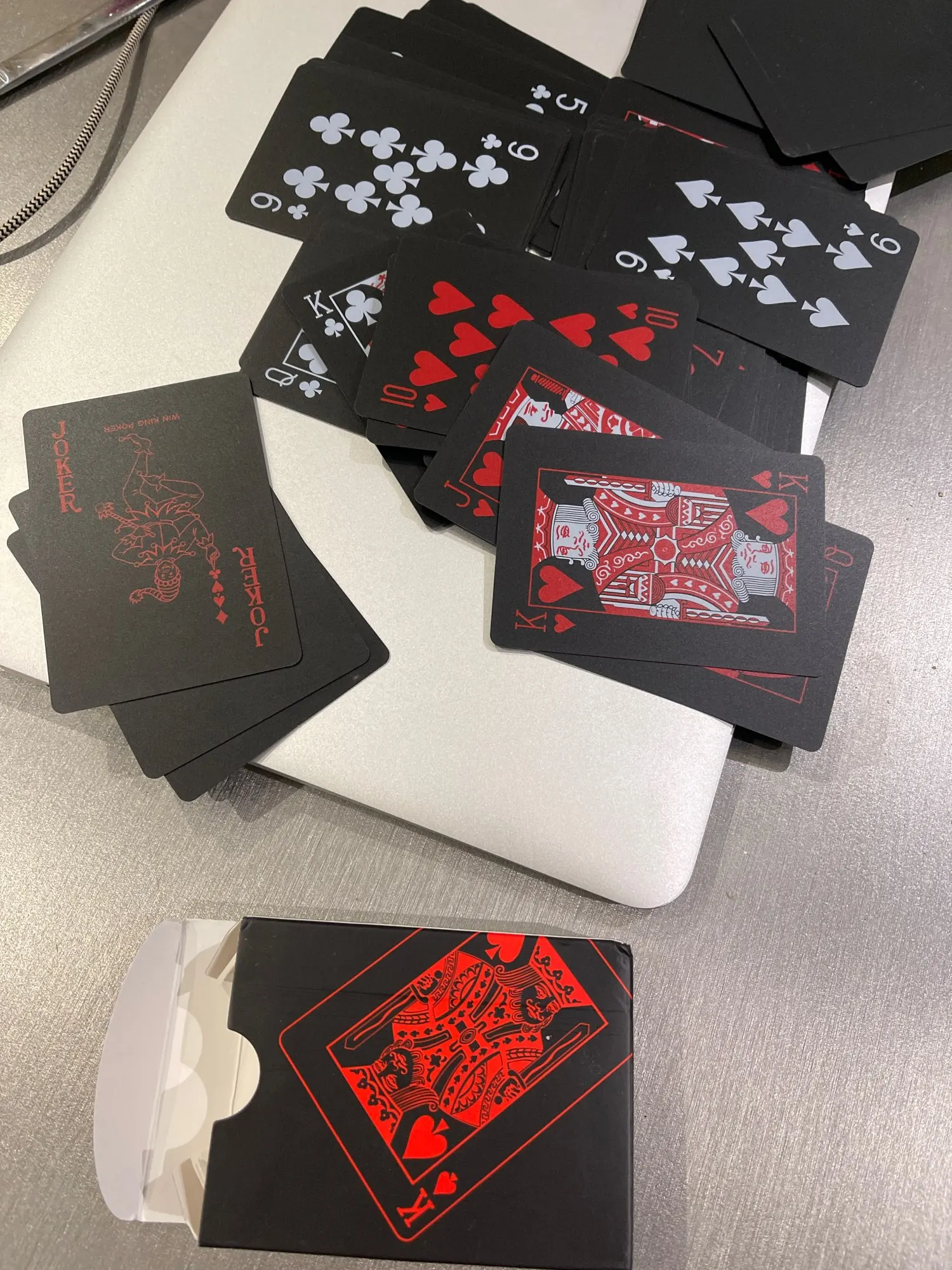 Игральные карты соответствуют описанию. Они ели приятные на ощупь, вы можете легко их заглотить и идеально подходят для покера. Потребуется некоторое время, чтобы подогнать к воротнику. (Доставка в течение 40 дней в Румынию)