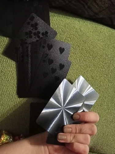 прикольный материал. ну если хотите играть этими картами то закажите золотой. потому что чёрные карты плохо видно в темноте