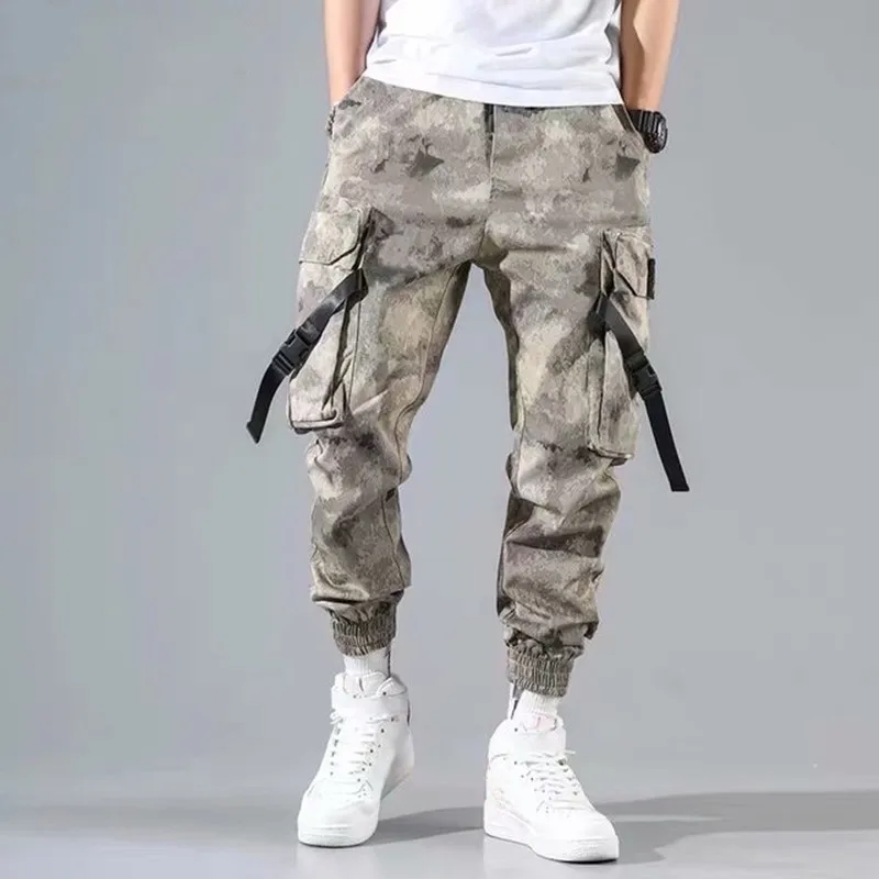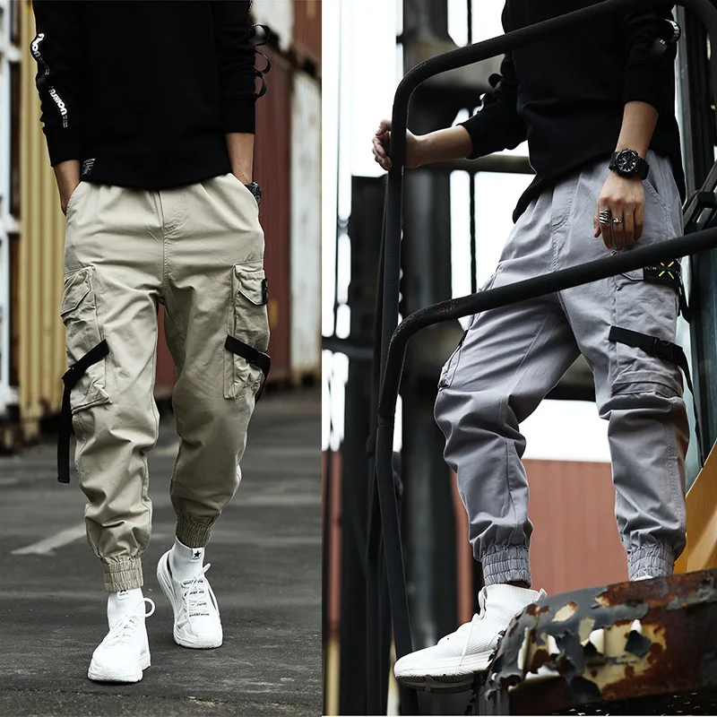 Новинка 2021, Джоггеры в стиле хип-хоп, мужские черные шаровары, мужские спортивные брюки с несколькими карманами и лентой, уличная одежда, повседневные мужские брюки