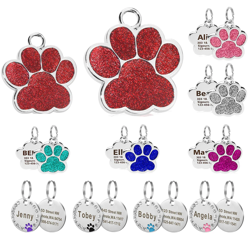 Бирка для собаки с гравировкой на заказ, аксессуары для ошейника для собаки, персонализированная идентификационная бирка для кошек и щенков, бирка с именем лапы из нержавеющей стали, подвеска с защитой от потери