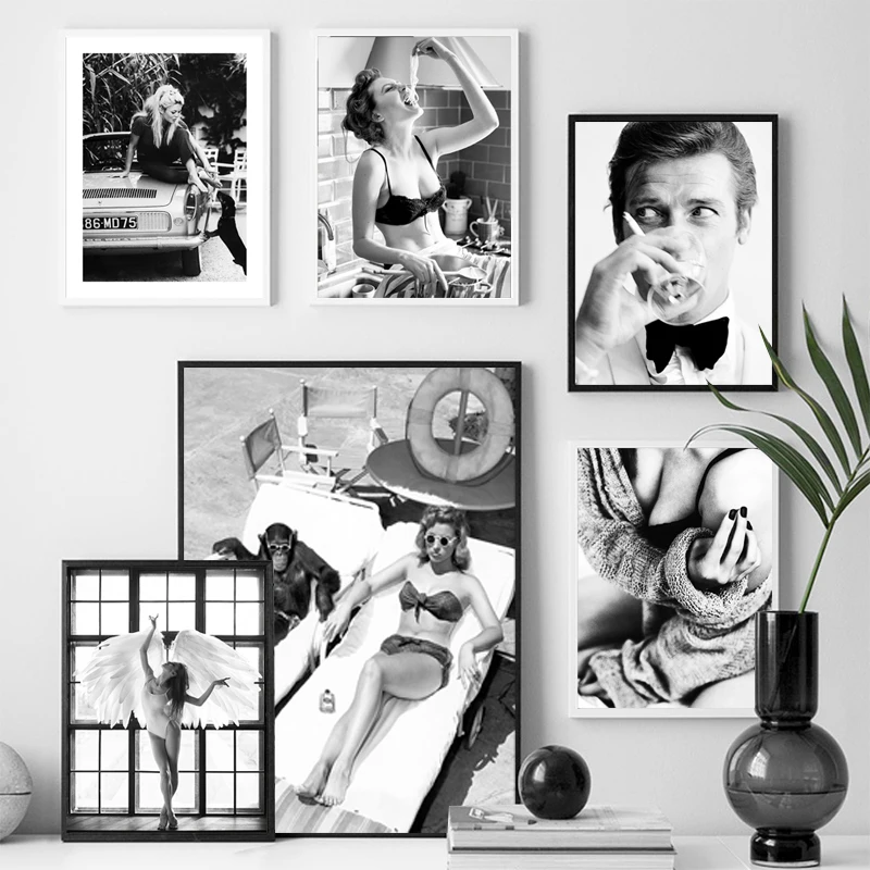 Черно-белые постеры и принты, модная девушка, настенная художествен...