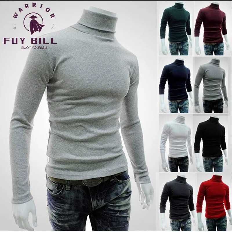 Новинка 2021, мужской свитер Fuy Bill на осень и зиму, Мужская водолазка, однотонный Повседневный свитер, мужские фирменные вязаные пуловеры приталенного силуэта