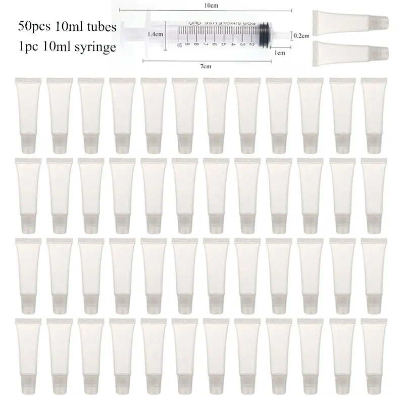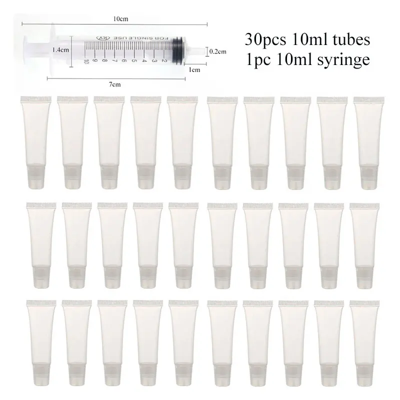 Блеск для губ емкость трубки: 10 мл Емкость шприца: 10 мл Материал: АБС-пластик Посылка включает в себя: как показано на картинке