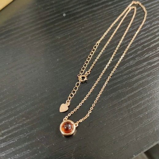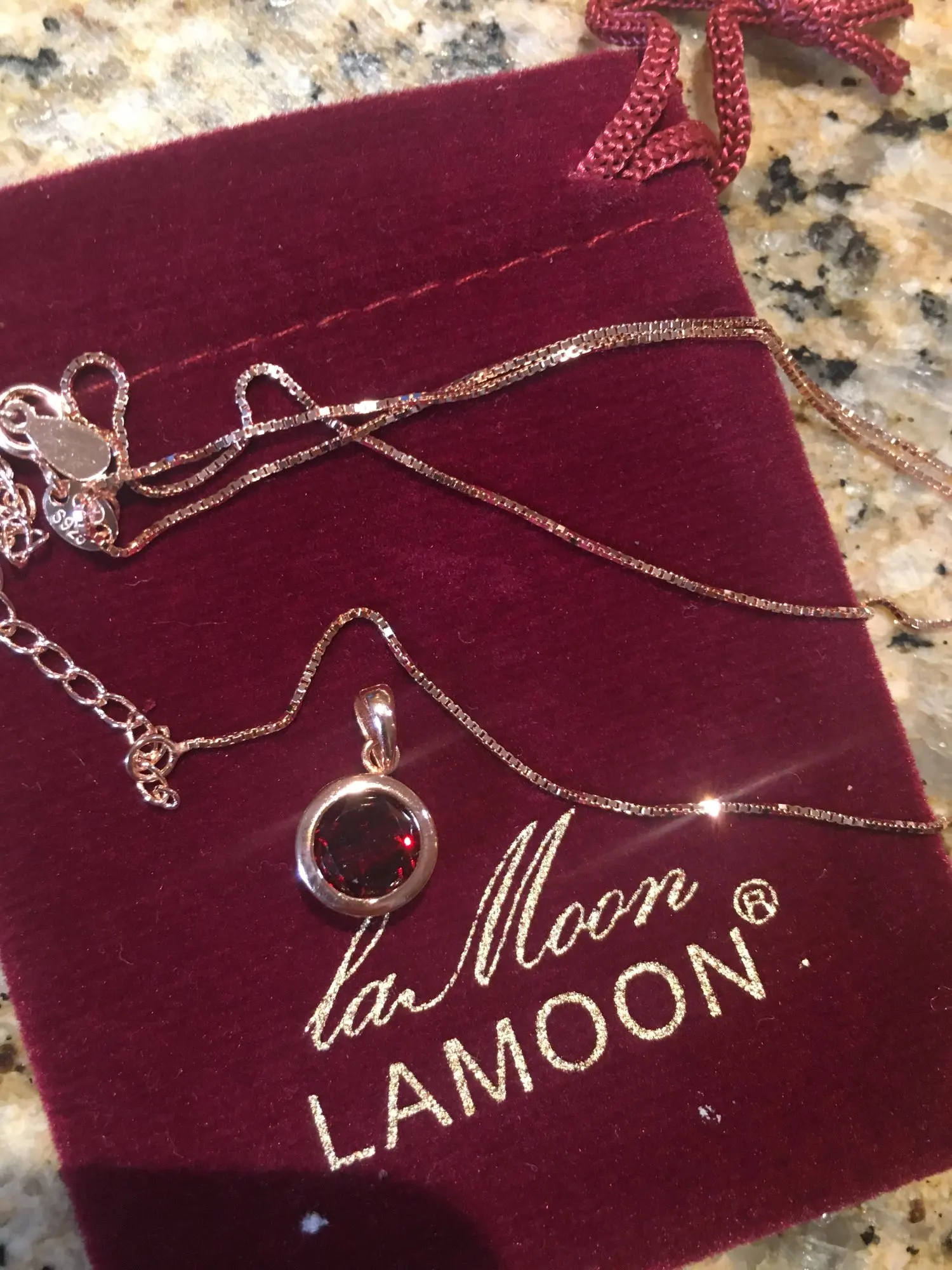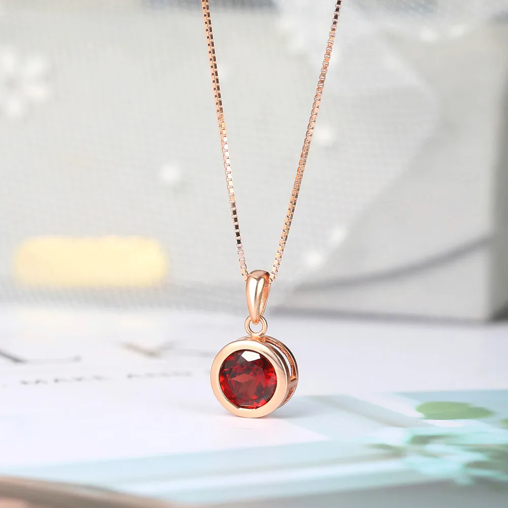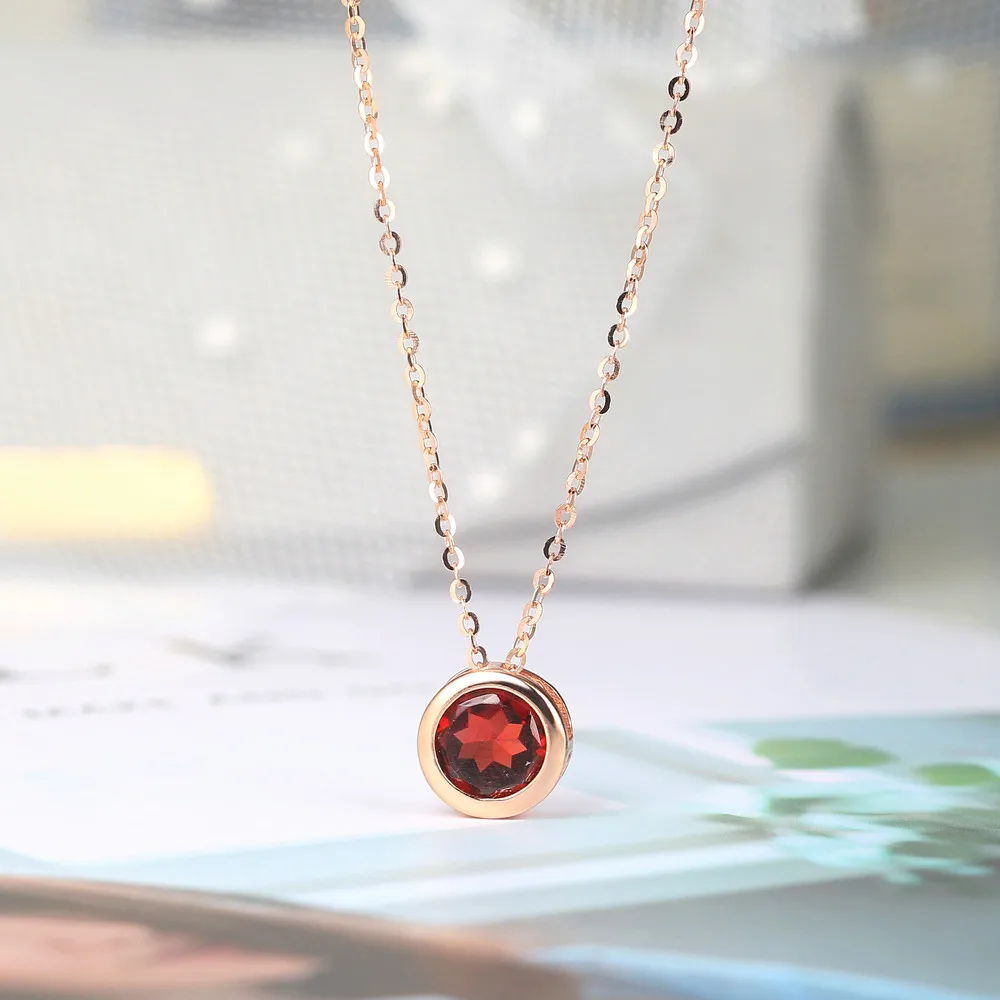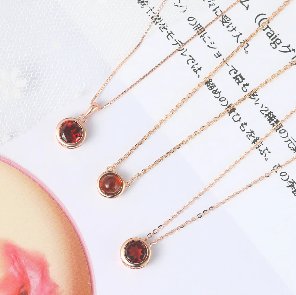 LAMOON 925 Серебряное ожерелье для женщин натуральный гранат подвеска на удачу 14K розовое позолоченное изысканное ювелирное изделие простой стиль LMNI002