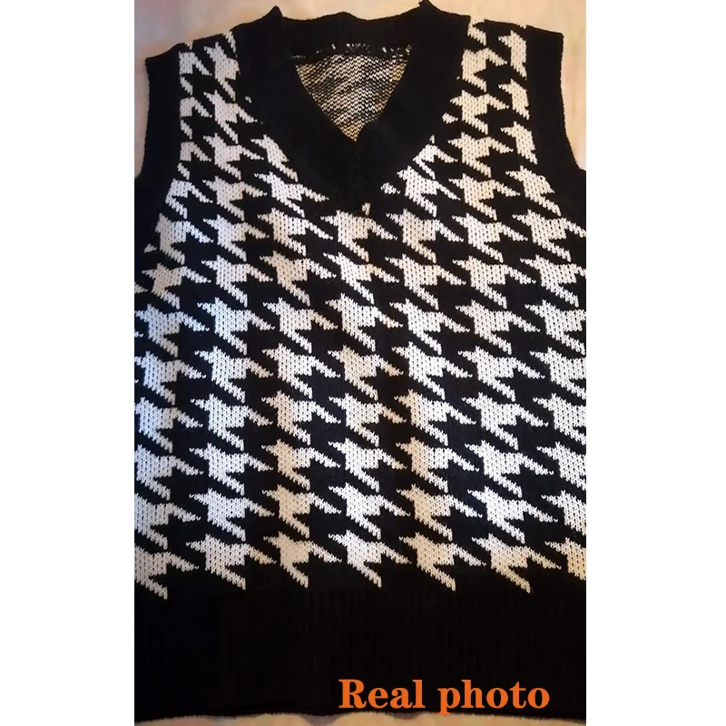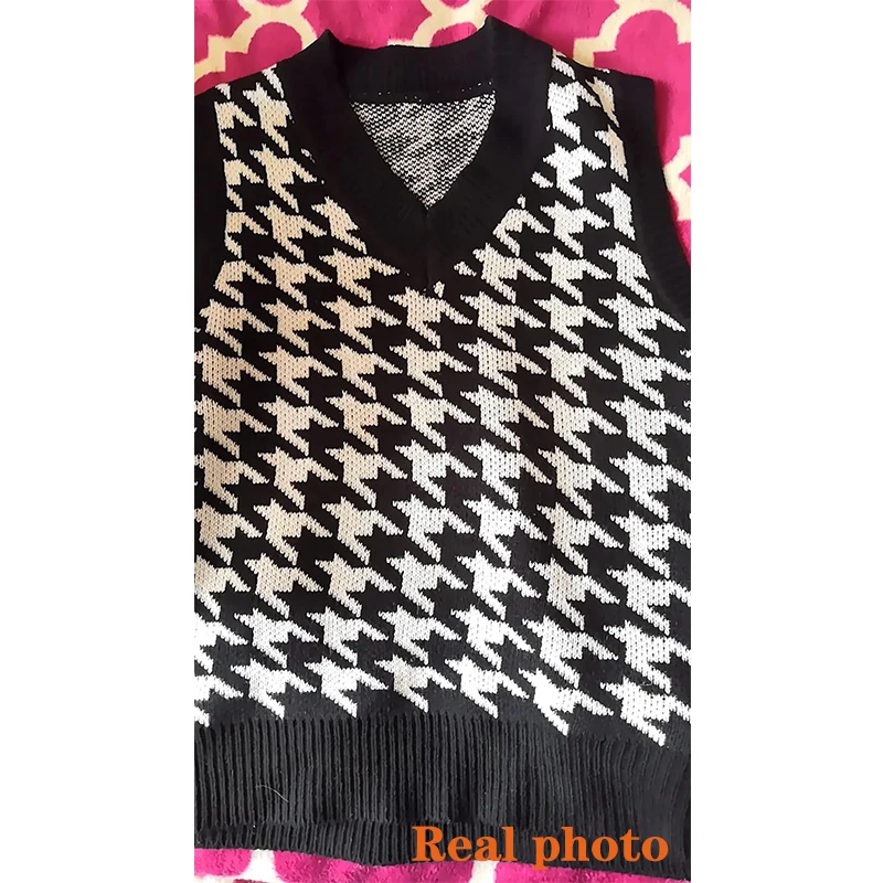 Черно-белый клетчатый свитер Vangull, жилет, Женские Повседневные в...