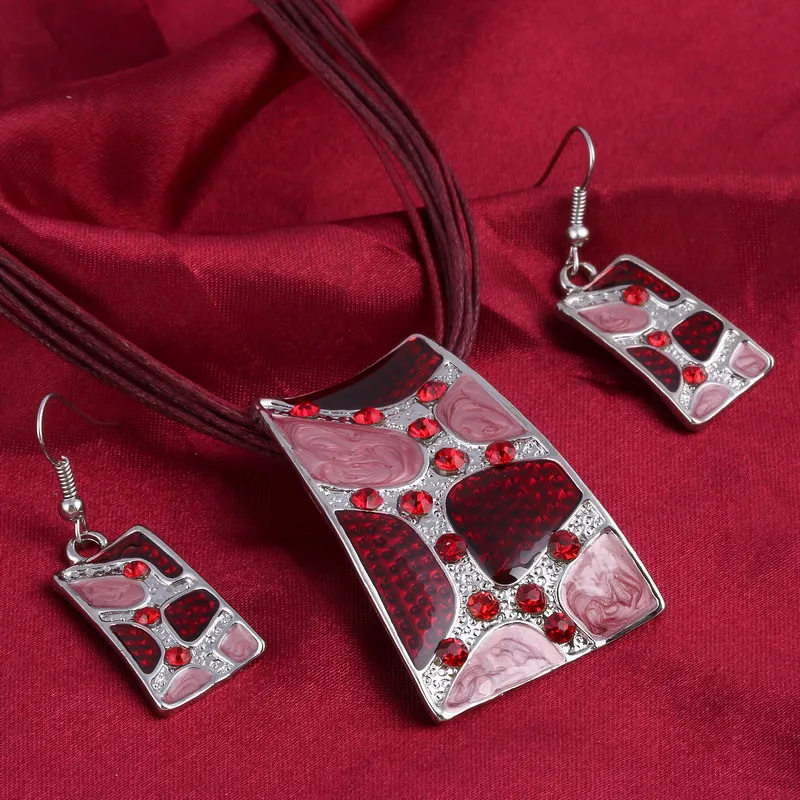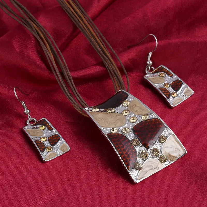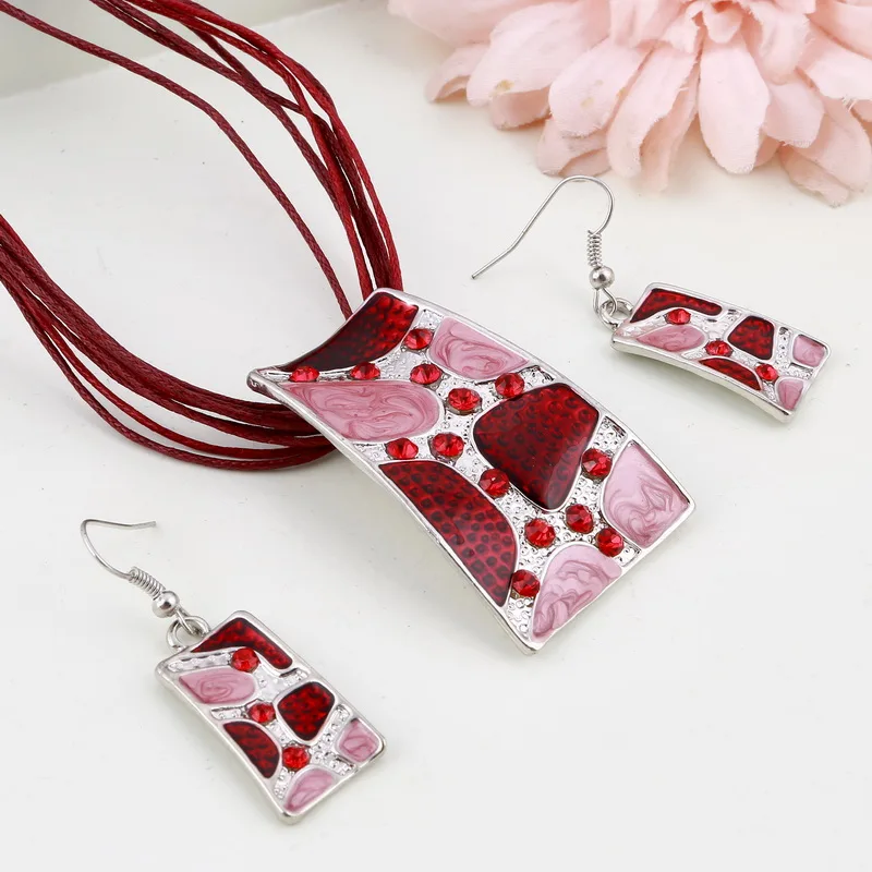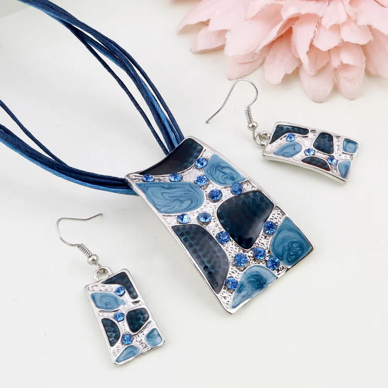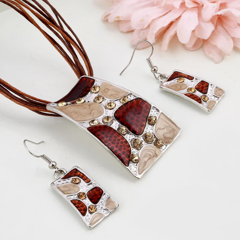 Геометрическим фиолетовым Ожерелье Серьги Комплекты Многослойные на вощеном шнуре из колье ожерелье эмалированное класса люкс из металла с украшением в виде кристаллов Свадебные комплект ювелирных изделий