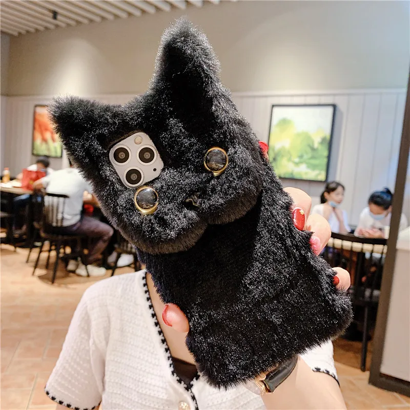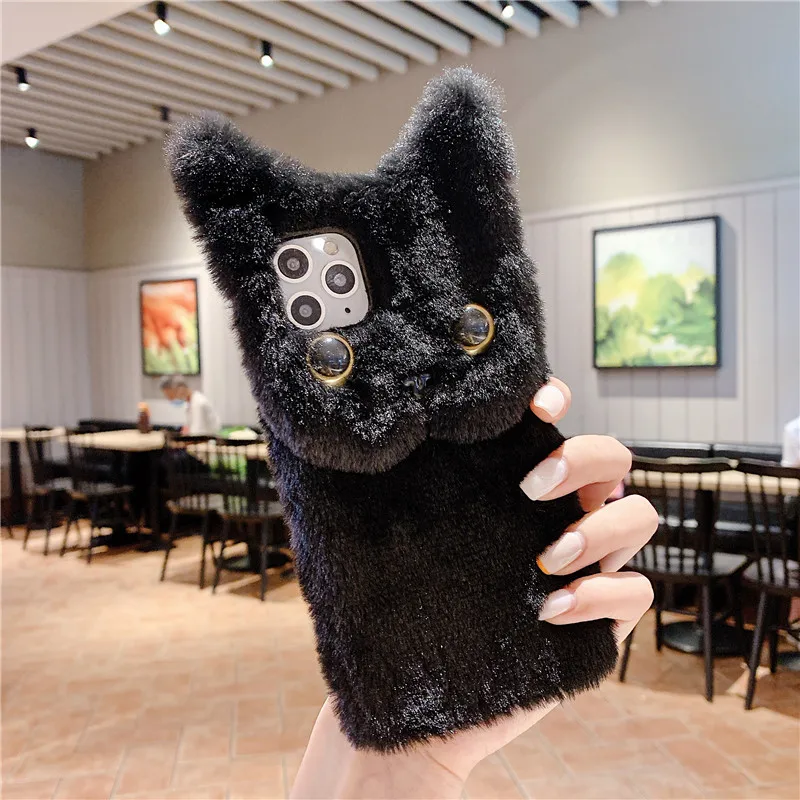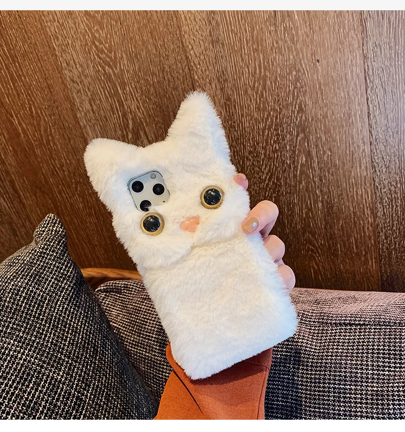 Новинка, модный милый пушистый чехол для девочек с котом для iPhone...