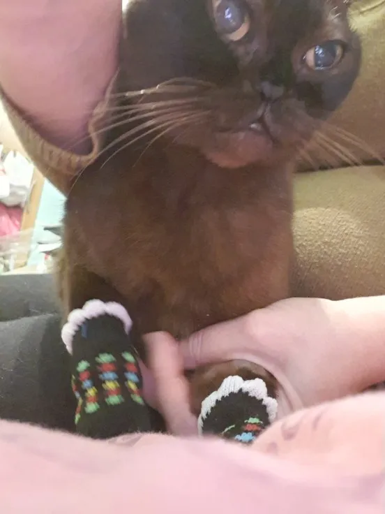 не знала какой размер заказать и заказала оба размера. но разница между ними в миллиметр или 2. прибыли быстро. продавец общительный и вежливый. кошка была в недоумении что это. позволила их себе одеть. выглядит в них мило. но тут же сама их сняла. но у нас пока что не так холодно. когда похолодает попробую ещё раз
