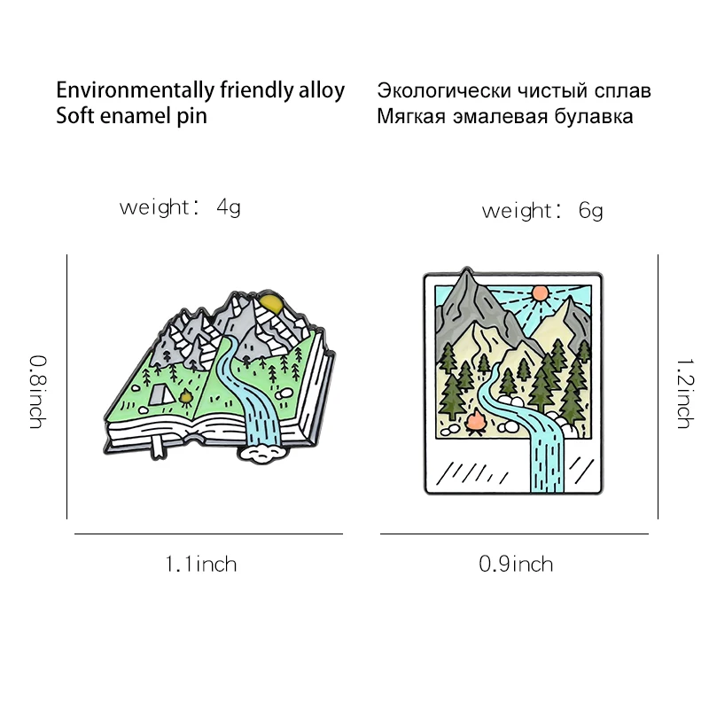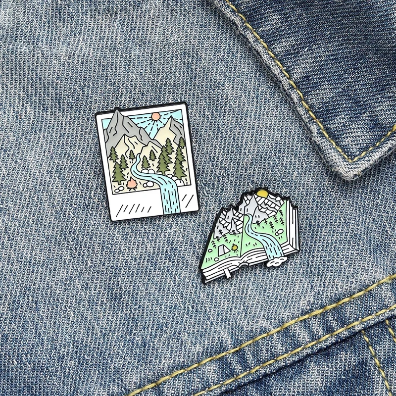 Стереоскопическая эмалированная брошь в виде книги с изображением гор рек в моей руке брошь с изображением леса открытка для путешествий креативный значок на лацкан