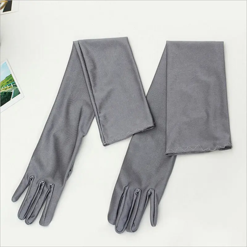 Черные, белые, красные, серые кожаные перчатки оперылокотьзапястье, Стрейчевые атласные длинные перчатки с пальцами, женские Хлопушки, перчатки, подходящие к костюму