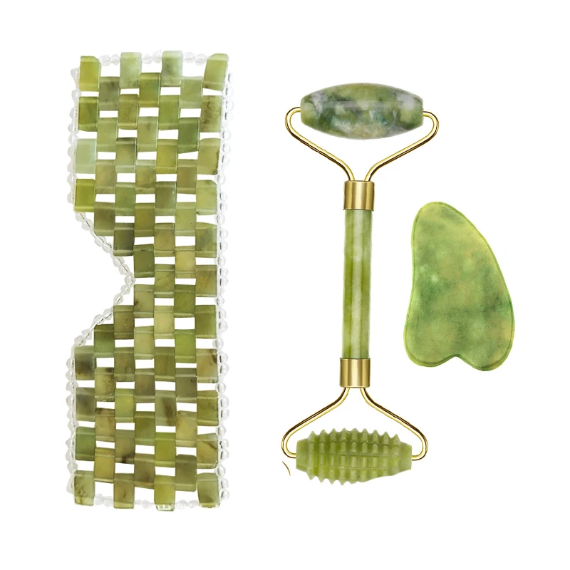 Нефритовый роликовый набор для массажа кожи с маской для глаз, омолаживающий 100% натуральный нефрит для лица и шеи, цикл красоты для снижения веса и подтяжки