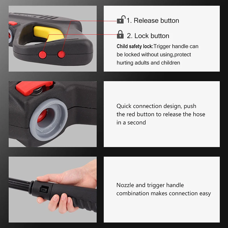 Нажмите кнопку пушки, чтобы автоматически использовать напорный пистолет-спрей, чтобы остановить распыление после отпуска.