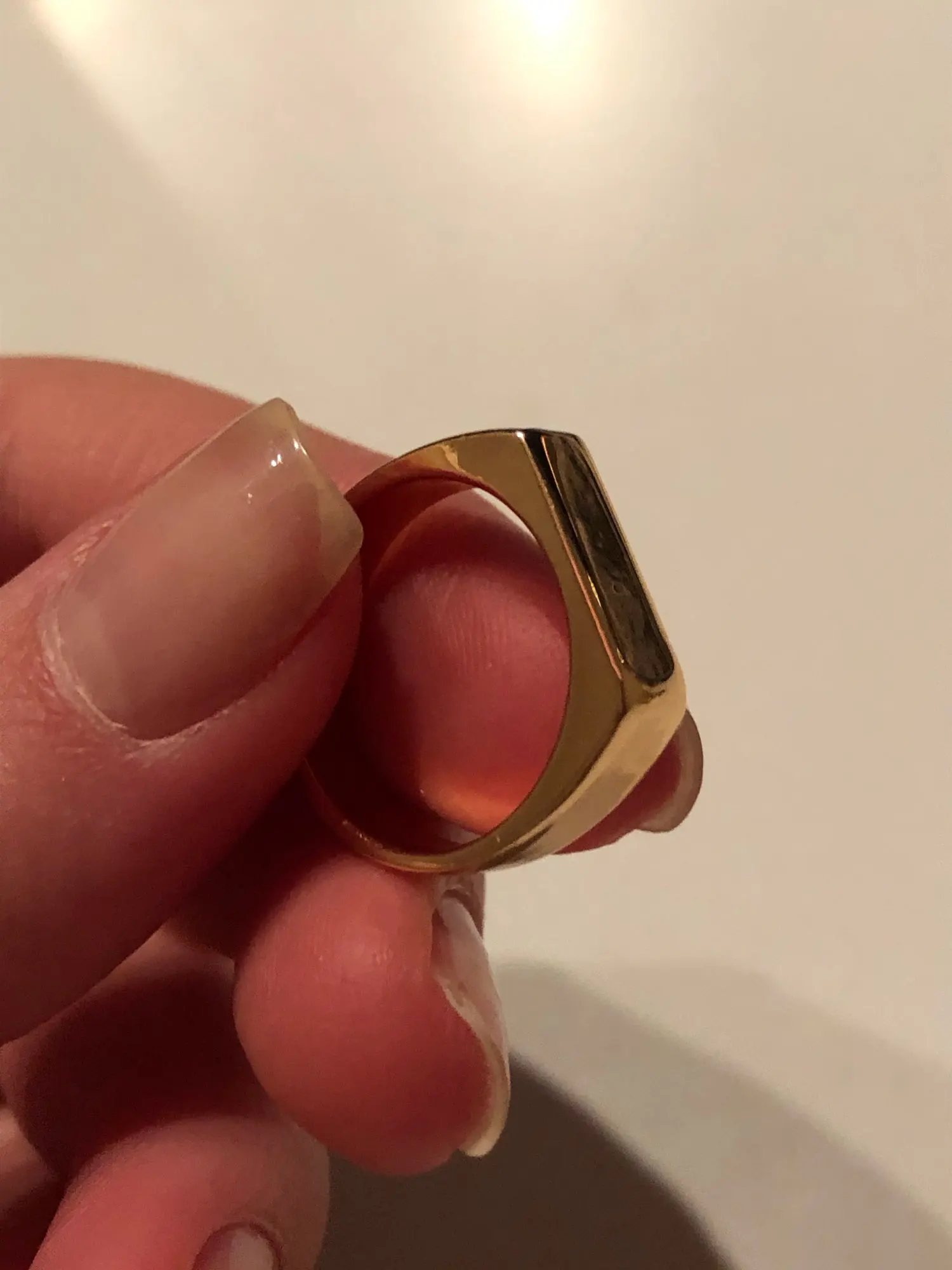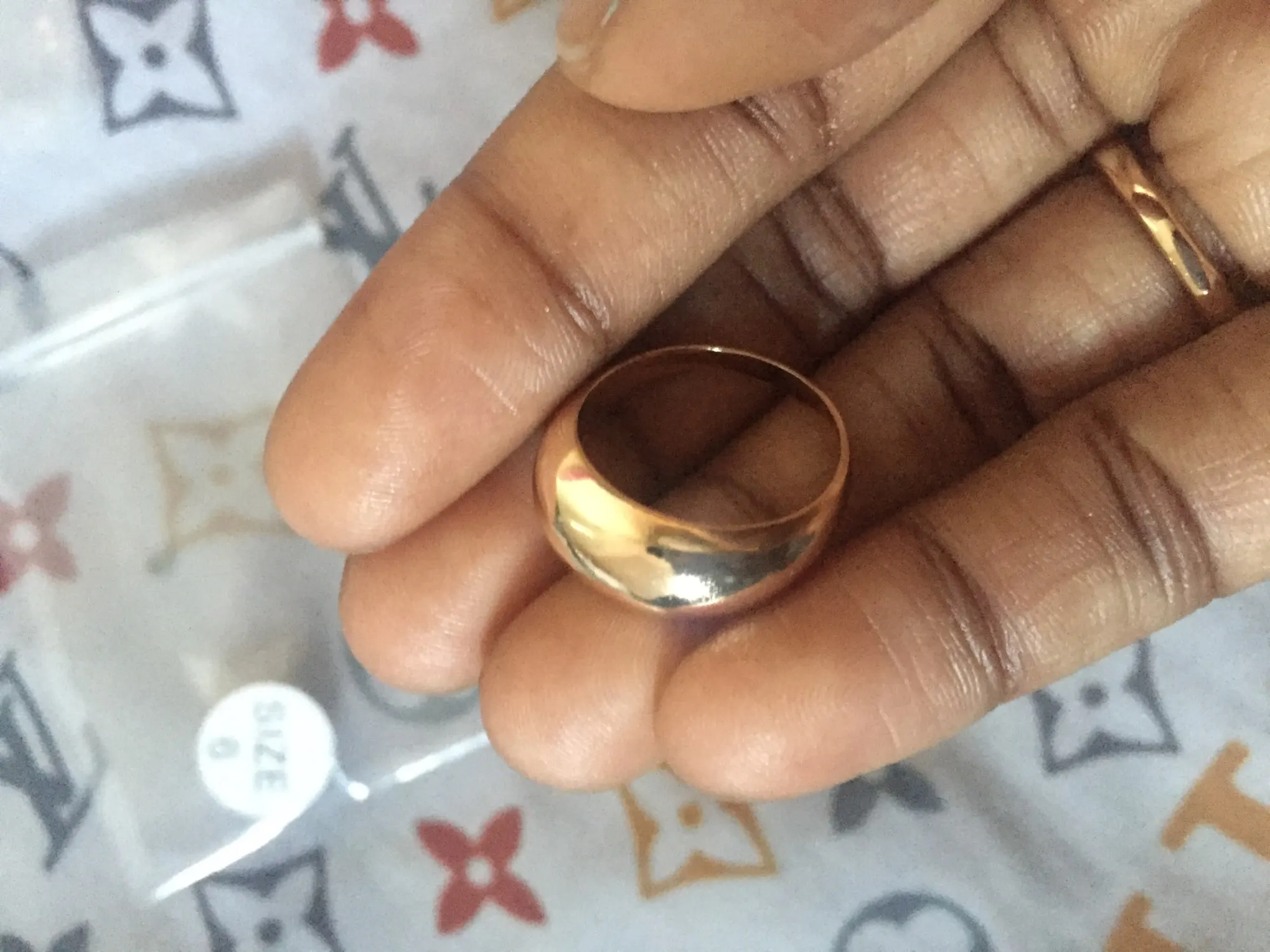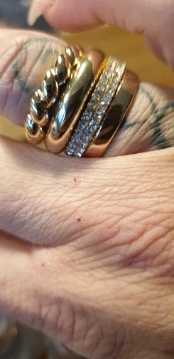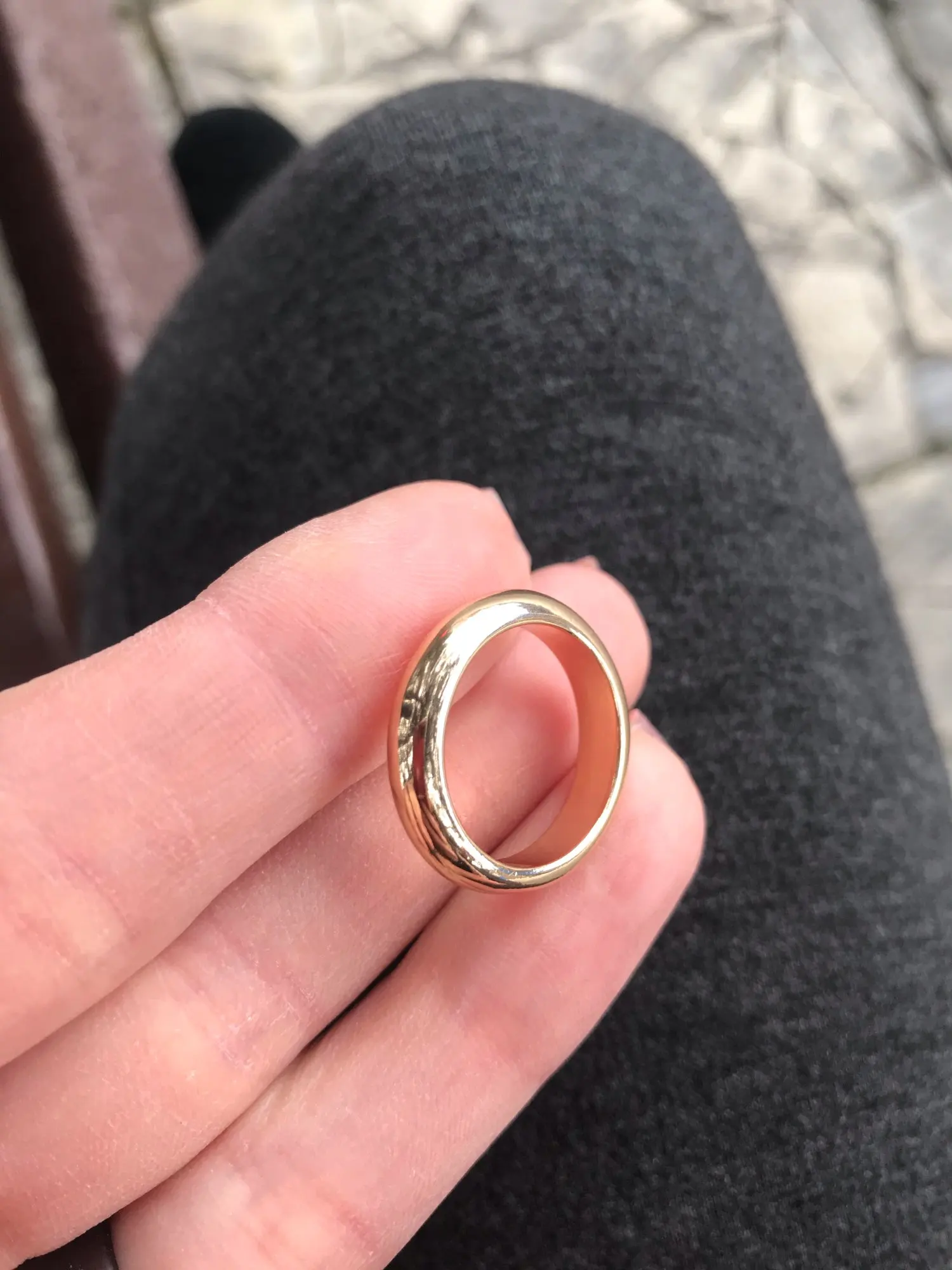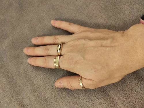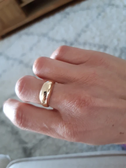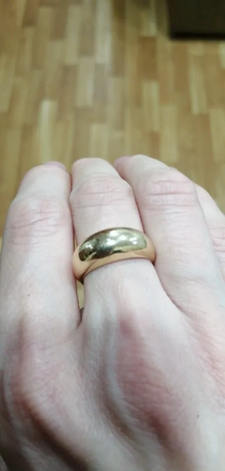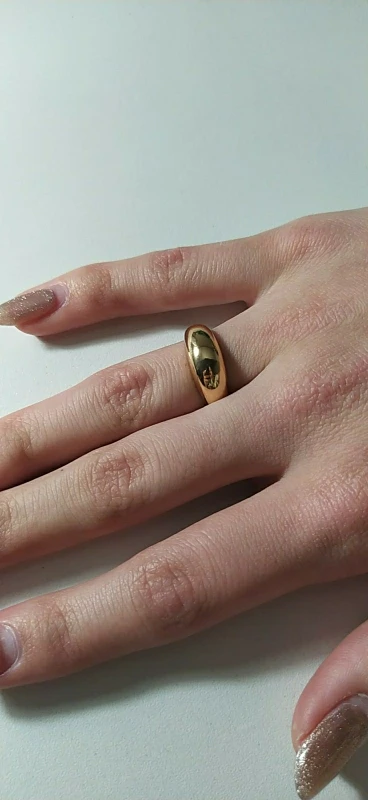 Люблю это кольцо! Это даже лучше, чем на фотографиях. Очень легкие и удобные. Вы даже не чувствуете, что носите ювелирные изделия. Я ношу его на среднем пальце. Блестящее яркое золото. Думая о заказе большего количества подарков!