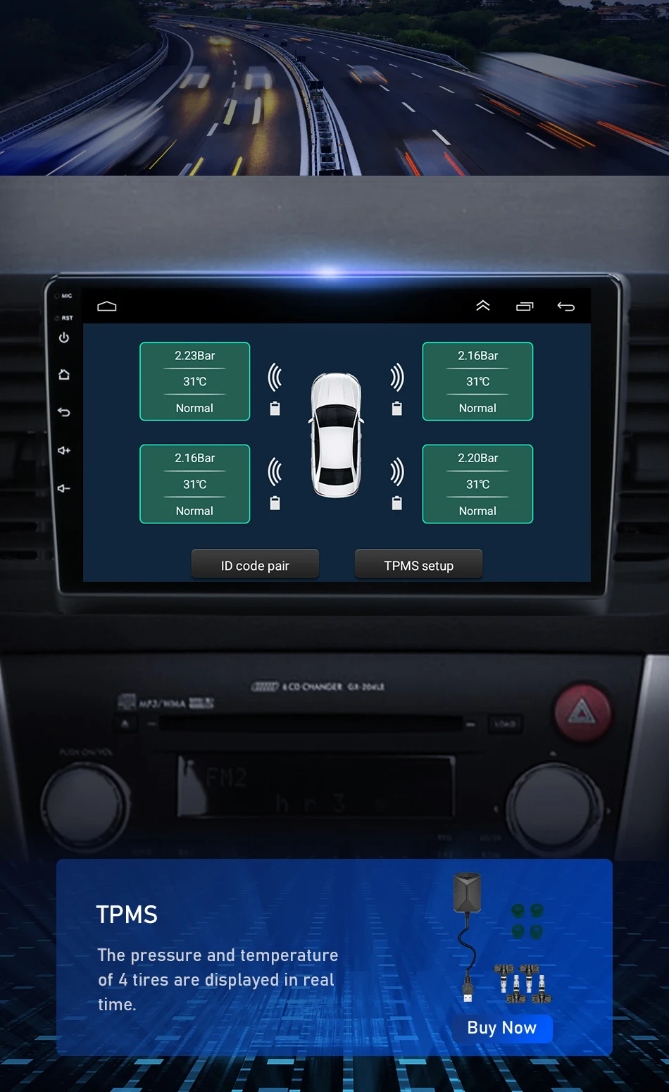 Все больше и больше национальных стандартов производства автомобилей требуют, чтобы транспортные средства были оснащены устройствами сигнализации давления в шинах. Можно увидеть важность устройств сигнализации давления в шинах. Кликните на картинку ниже, чтобы купить устройство сигнализации давления в шинах, подключите радио и оставьте отзыв о состоянии шин в режиме реального времени.
