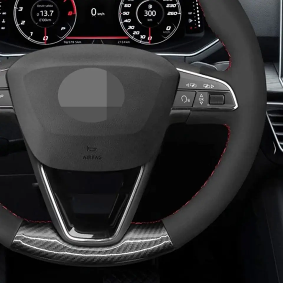 DIY черная замша углеродного волокна Кожаный чехол рулевого колеса автомобиля для Seat Leon 2013-2020 Ibiza Альгамбра Арона Ateca Tarraco Толедо