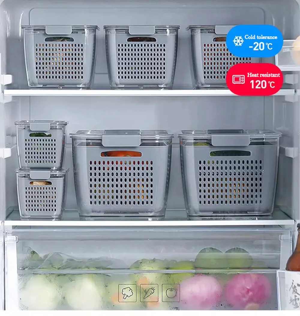 Пластиковый ящик для хранения на кухне, коробка для хранения овощей, фруктов, холодильника, сетчатый органайзер для хранения сита, корзина, кухонные инструменты