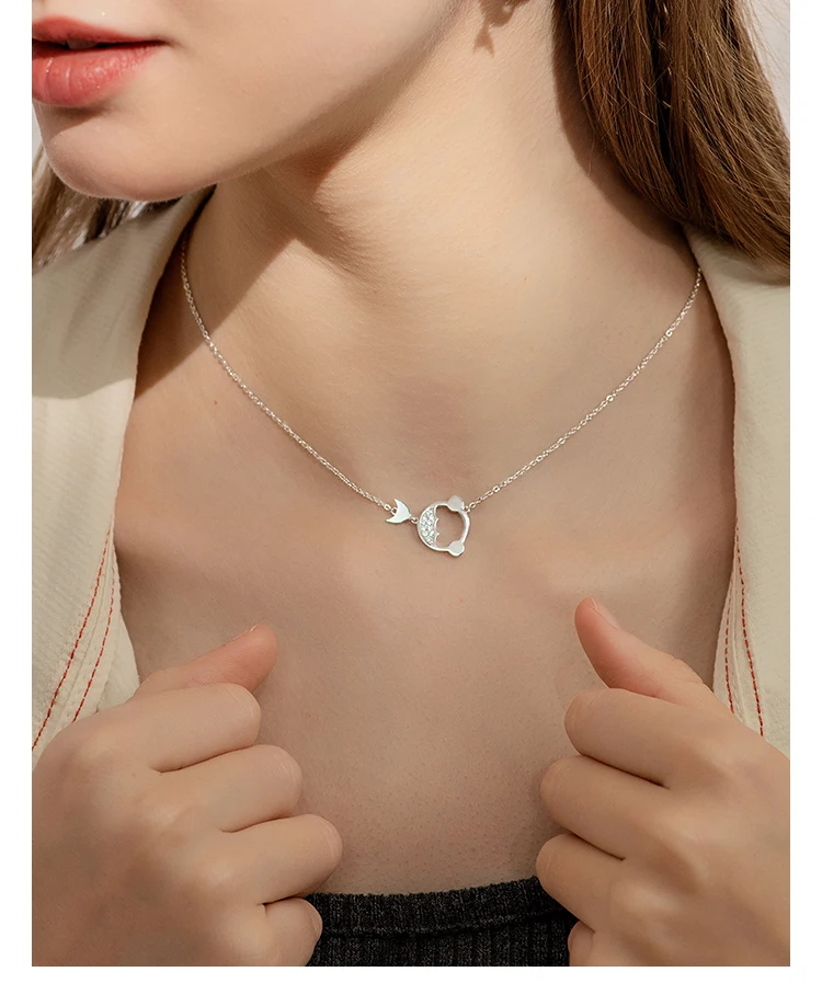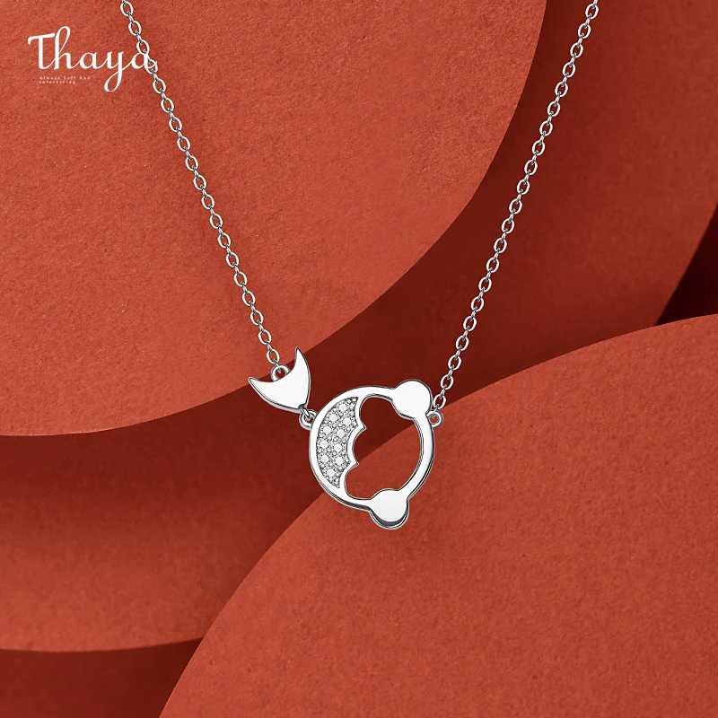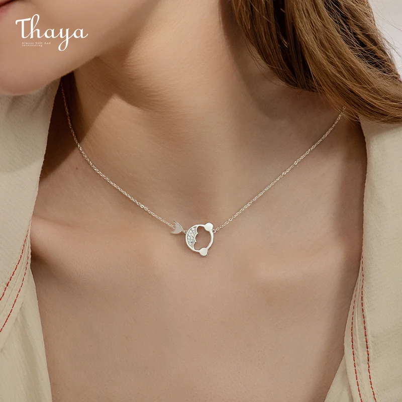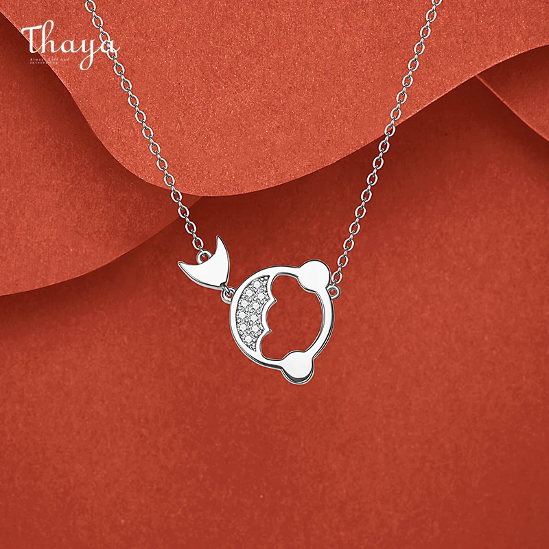Thaya, золотое ожерелье с рыбкой, серебряная подвеска с белым цирконием, ожерелье Koi, 45 см, цепочка для женщин, ювелирные украшения, вечерние, подарок