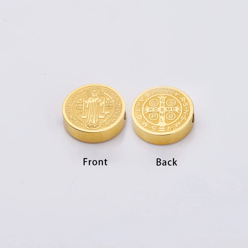 100% Нержавеющаясталь медаль Святого Бенедикта с очаровательной бусинкой золотосеребристый цвет металла Сан-шарик зеркальная полировка оптовая продажа 20 штук